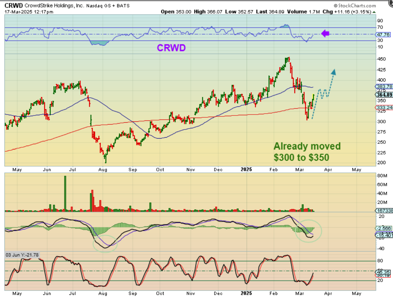 CRWD was a Huge runner in 2023, and then it dropped in August 2024 and recovered the highs. Now it dropped with the ICL sell off, but that looks like a ‘shakeout’ at the 200sma. CRWD started to run 5 days ago too (during the market crash). It may stall at the 50sma. If it ‘crawls’ there, that would be a buy, or buy any dip here.