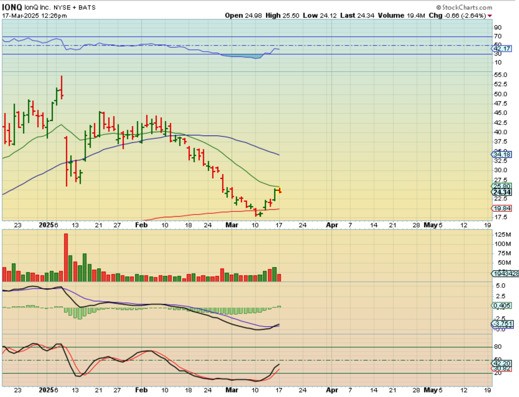 IONQ is in that same sector. It lost the 200sma and recovered it. This doesn’t look like much, but it has moved from $17.50 to $25.50 in 5 days. It may stall here at resistance but buy the ‘dip’ or ‘crawl’ or ‘breakout’—if this is your kind of trade. NOTE: IF THIS DROPS TO THE 200sma, THAT IS NORMAL, but it is also painful.