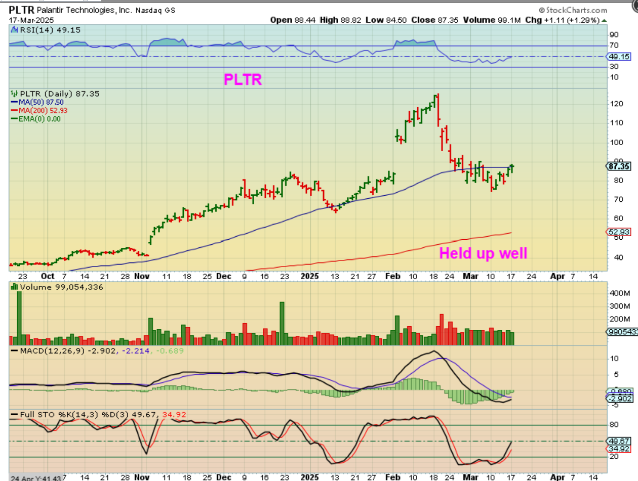 Now let’s move on to stocks that performed very well during the bull run. They often recover quicker, or if we enter a bear market, they bounce better. I discussed finding these BULL STOCKS and keeping a check list. I will share a few of mine now that I think we may have bottomed. I will repeat—it is the Tuesday before the FOMC, and I expect some kind of Fed reaction.