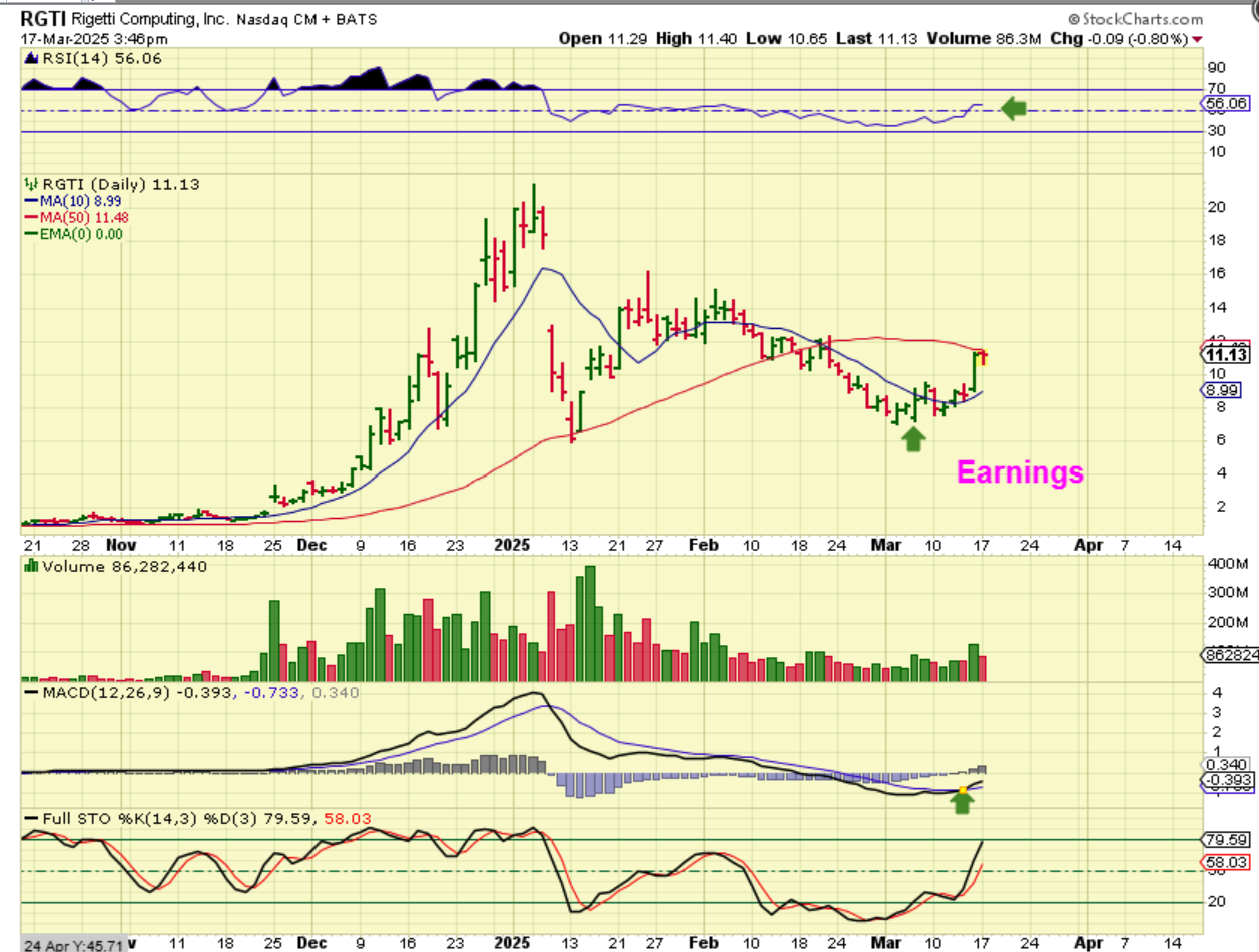 On March 14 I pointed out RGTI as also popping while the markets were in a sell off. It had resistance at the 50sma.