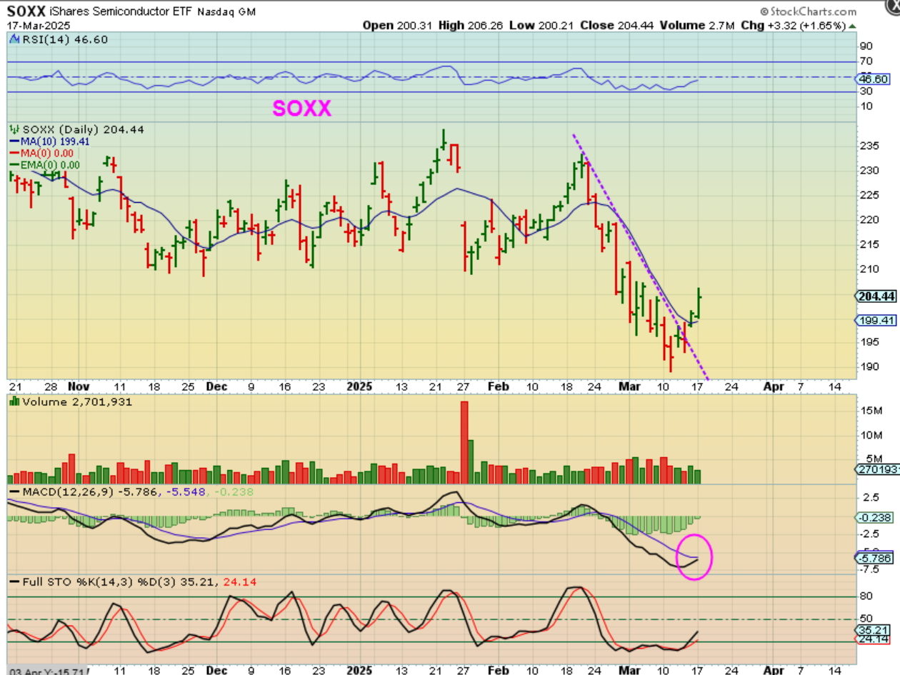 SOXX – Last week I said that I think the SOXX bottomed first, and I think that I mentioned that you could buy SOXL with a stop. The SPX and NASDAQ made new lows, while the SOXX moved higher. So now the SOXX looks to be on day 4, doesn’t it. What that does is build confidence that the other sectors would be close behind.