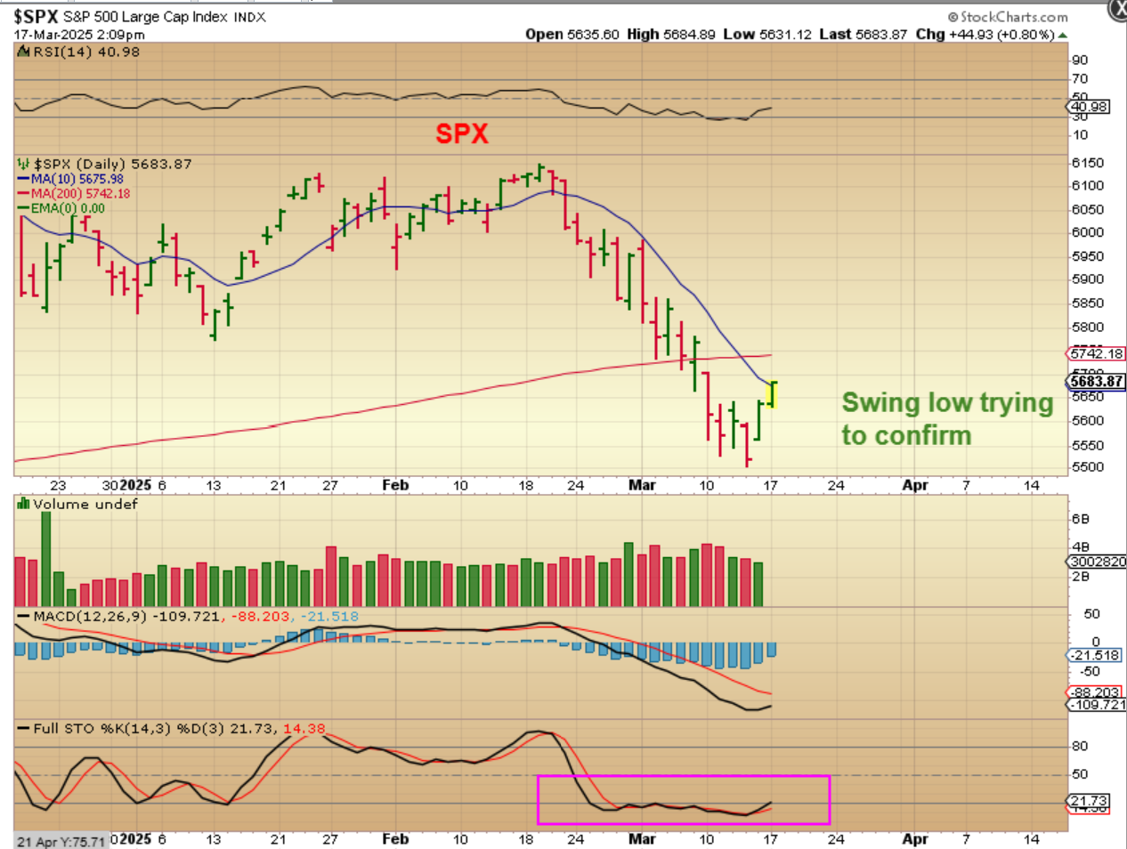 SPX – We have a swing low in place and The SPX was moving above that 10sma, so I posted this in the commenting section midday.