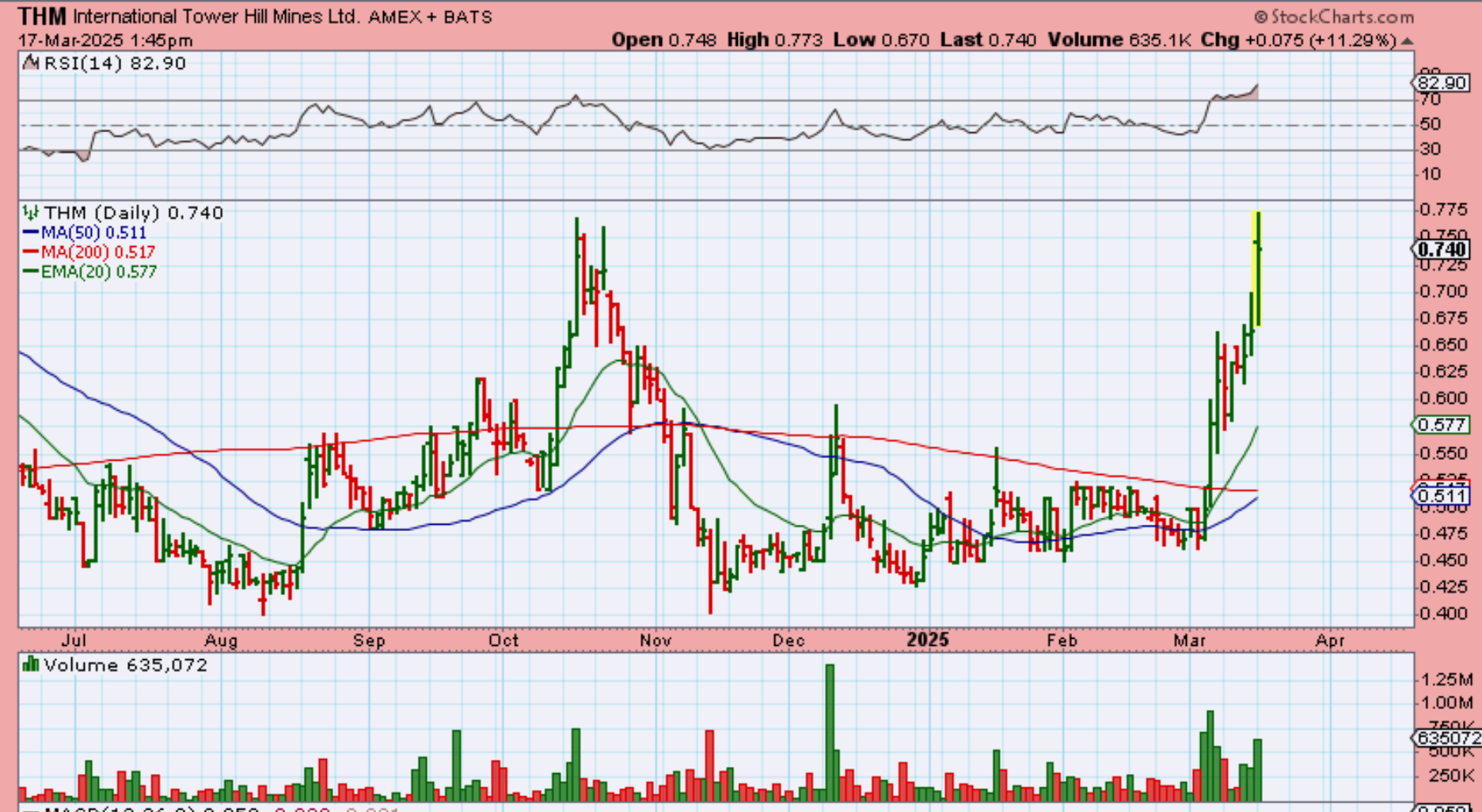 THM popped over a week ago, and now it has been running, so this just goes to show that some of these laggers and smaller stocks are now joining in and running too. So…
