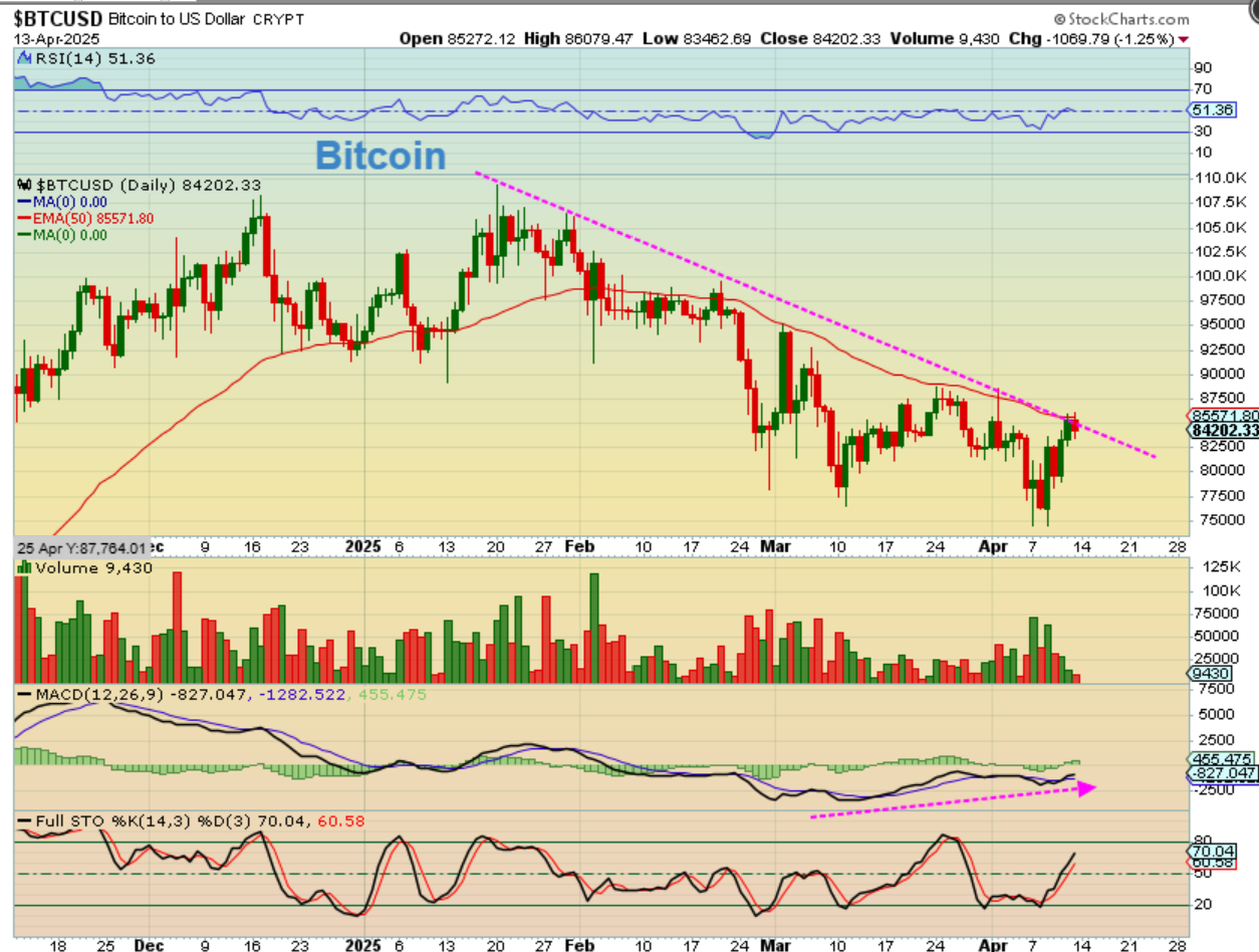 Bitcoin is trying to breakout from that downtrend. It is also pushing against that 50sma at $85571. The MACD has bullish divergence, and I have to admit, this looks like Bitcoin could breakout and have a bullish week or 2 ahead. When I looked at the weekly chart, it too looks very bullish.