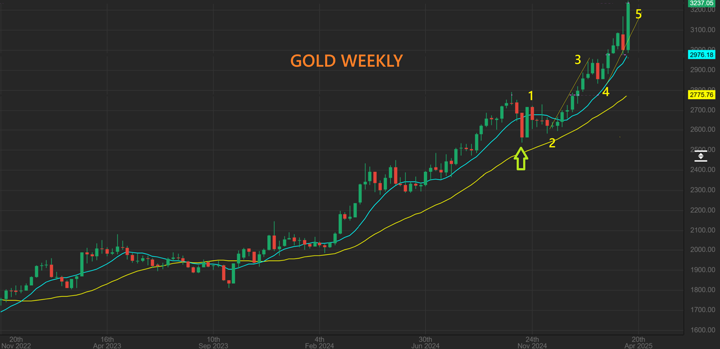 Now we take a look at the weekly chart for Gold: