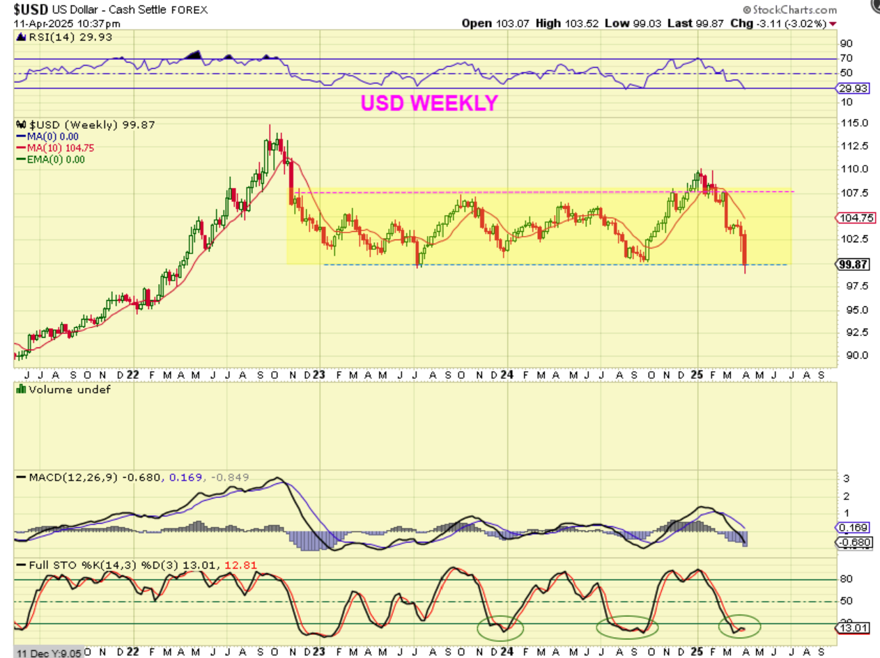 THE USD broke lower as expected, but it actually took out the multiyear lows already. This is the area that I felt the USD could bottom, act as support, and move higher. So far the USD has not affected Gold, but if this bottomed and runs higher, Gold may ‘peak’ and drop into an ICL.
