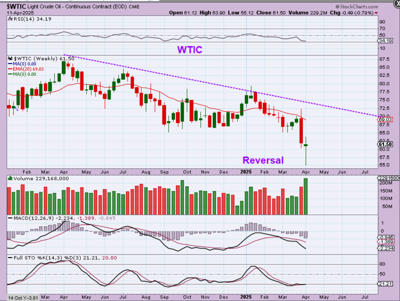 WTIC also gave us a bounce and a reversal candle on the weekly chart. Timewise we could have another daily cycle and that would give us a bounce, a back-test, and another drop.