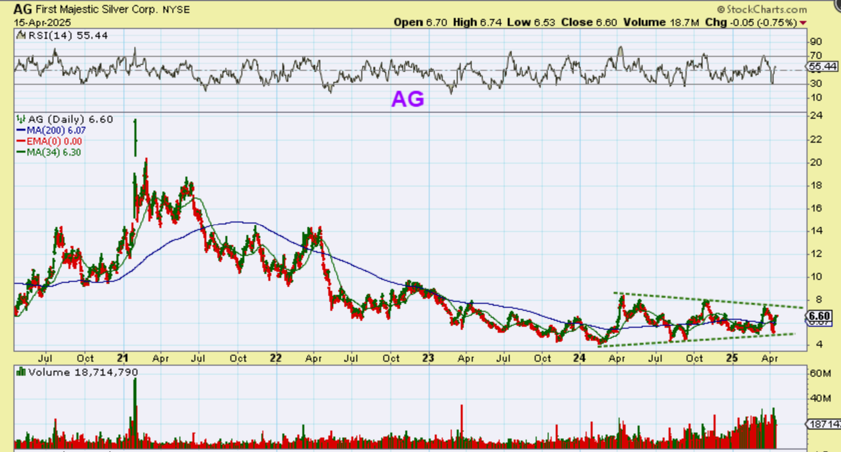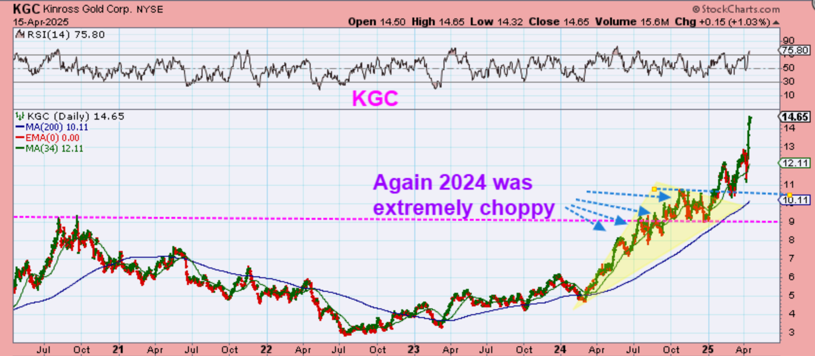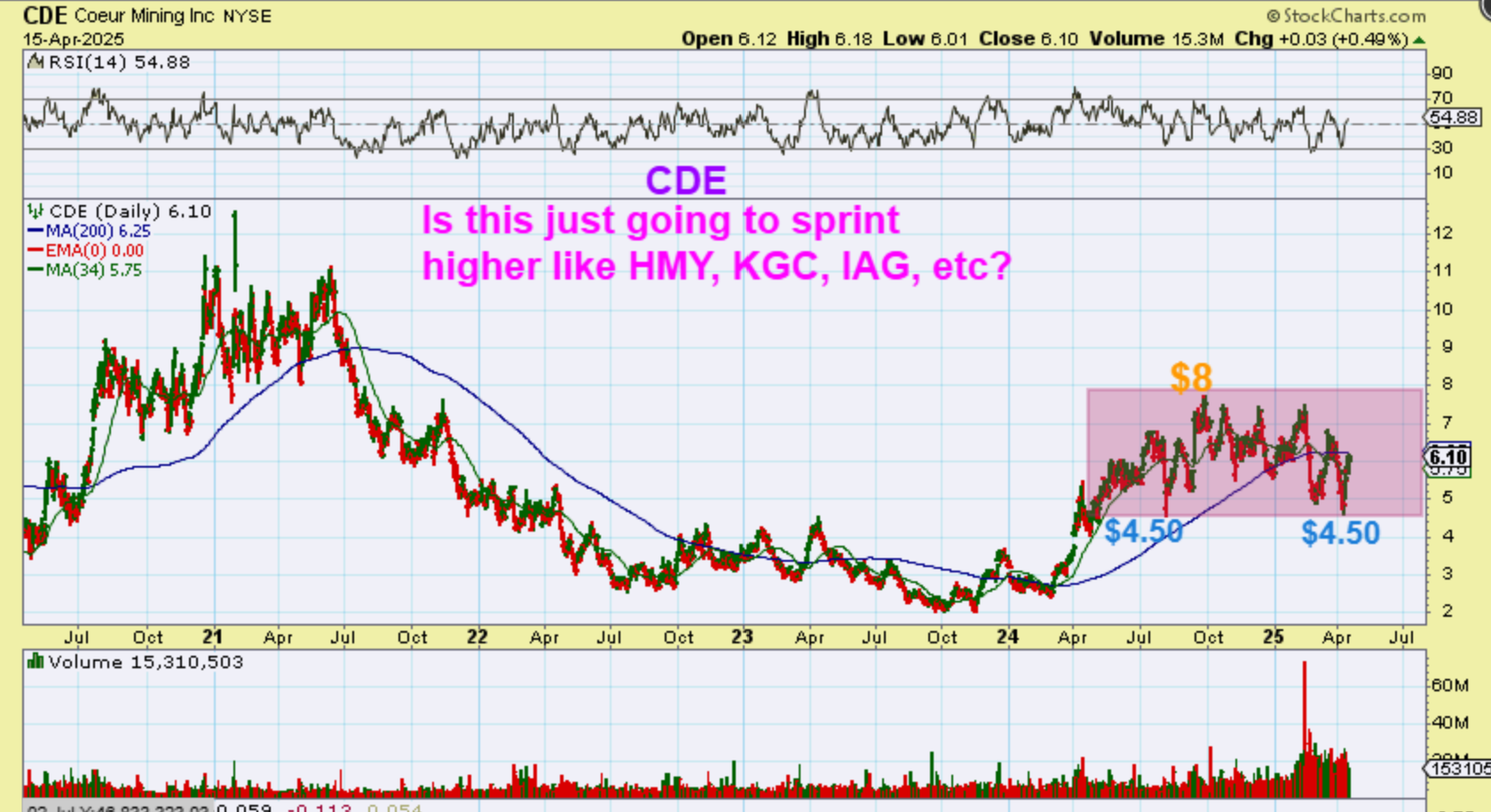 KGC (& IAG) have also been favorites of mine, but they also had a rough year in 2024. This choppiness makes one wonder (at the time) if they can hold their gains. Will buyers ever Buy & Hold and stop all of this chop! That said, buying 2 or 3 years ago at $3 would have paid off nicely. So I wonder, Will the Silver stocks get off the ground too?
