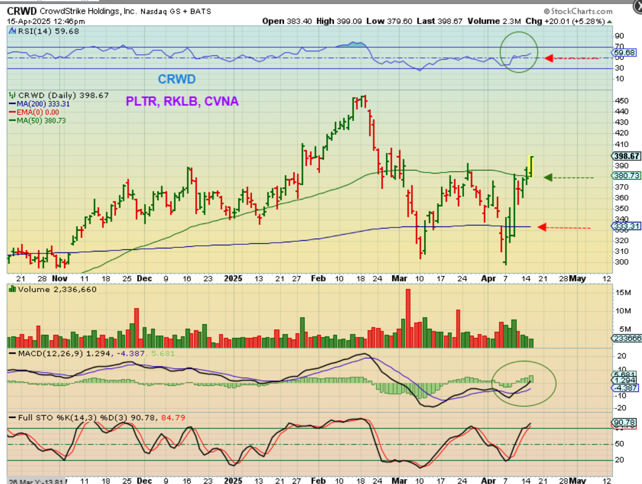 CRWD, for example, has some really nice price action, moving above the 50 & 200sma and the RSI is almost 60. PLTR, RKLB, CVNA, and others also look to be recovering more quickly.