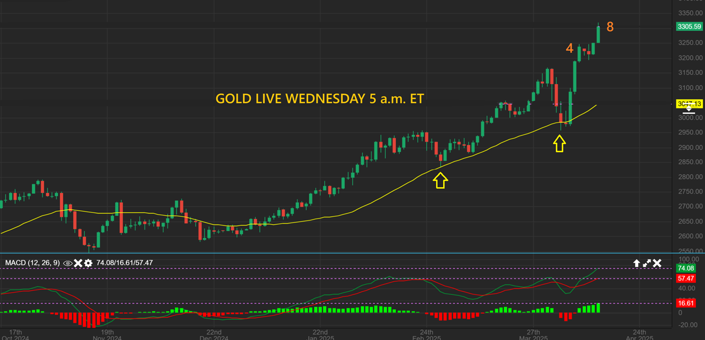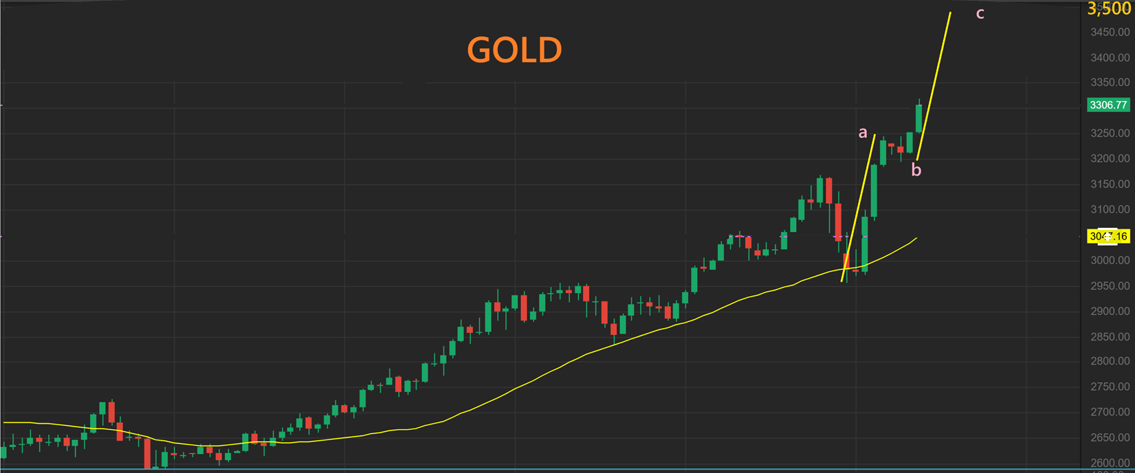 GOLD is becoming the new Bitcoin. It looks like a safe haven play, since it just keeps finding buyers. Gold hit $3300 overnight! A measured move would bring this to $3500, if the second leg matches the first leg.