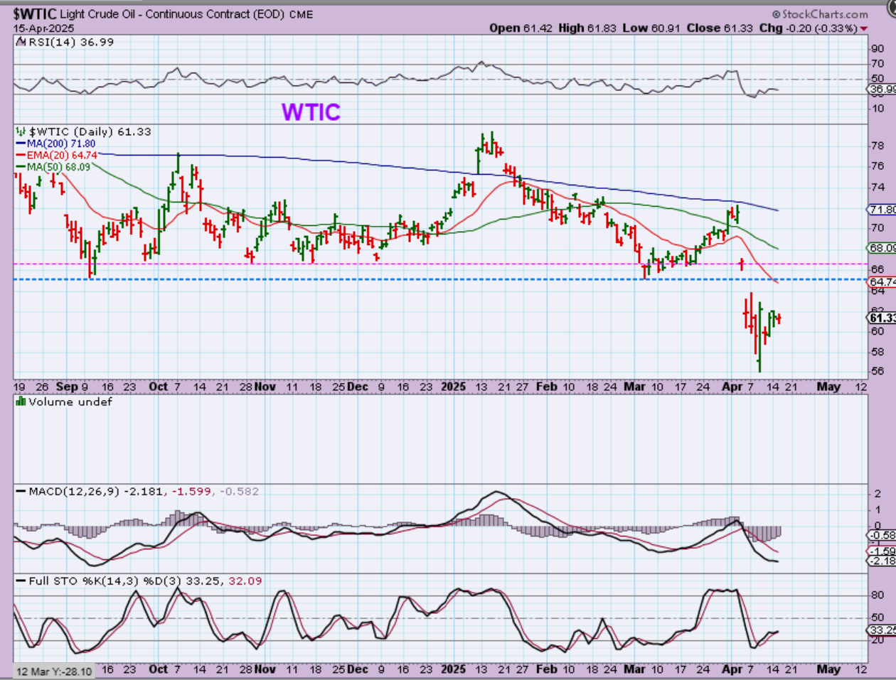 WTIC – Oil is trying to bounce, but I am thinking that it will only get up to do a back-test and then it could roll over again.