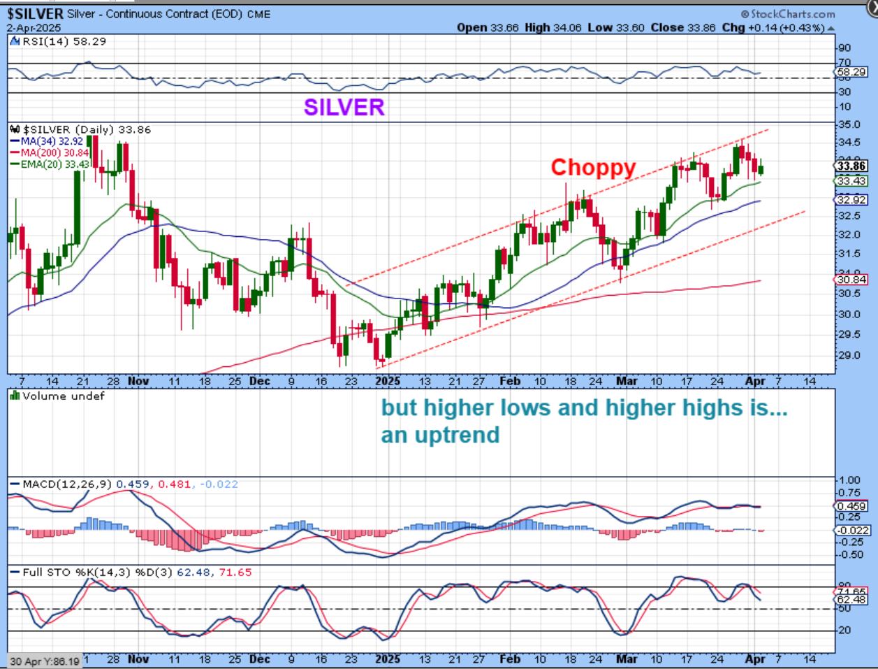 My point in showing the above is that we are currently hearing that the tariffs could cause runaway inflation, families will pay thousands per year out of pocket, companies will raise prices worldwide, companies will not take out loans, so growth will stagnate, etc, etc, etc. The uncertainty has caused the bull market to go into correction territory.  Yes, the correction could give us bear action for a while, but an ICL will come due and the next intermediate cycle could be that one that rallies out of the ashes, even while the bad news still spreads like wild fire. The markets rallied during a banking/ housing crisis. The markets rallied during the worst part of the Covid Crisis. We’ll just have to wait and see how this plays out, but patience is important when you hit the choppiness that these markets are giving us. We want to have funds to deploy if the markets and bitcoin go on to another bull rally higher. And even in bear markets, the first 2 daily cycles bounce nicely, but you want to avoid the last 2 daily cycles, unless you are shorting.