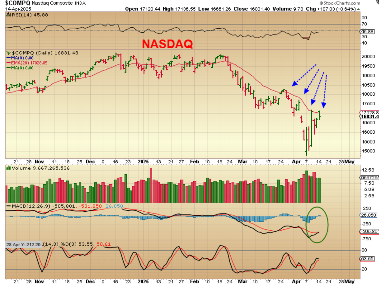SPX – Take a look at the 20 ema. It did close above it and then roll over in March, but that was a lot of Trump tariff chatter that crashed the markets. A push above Mondays highs would be the next move above the 20 ema.