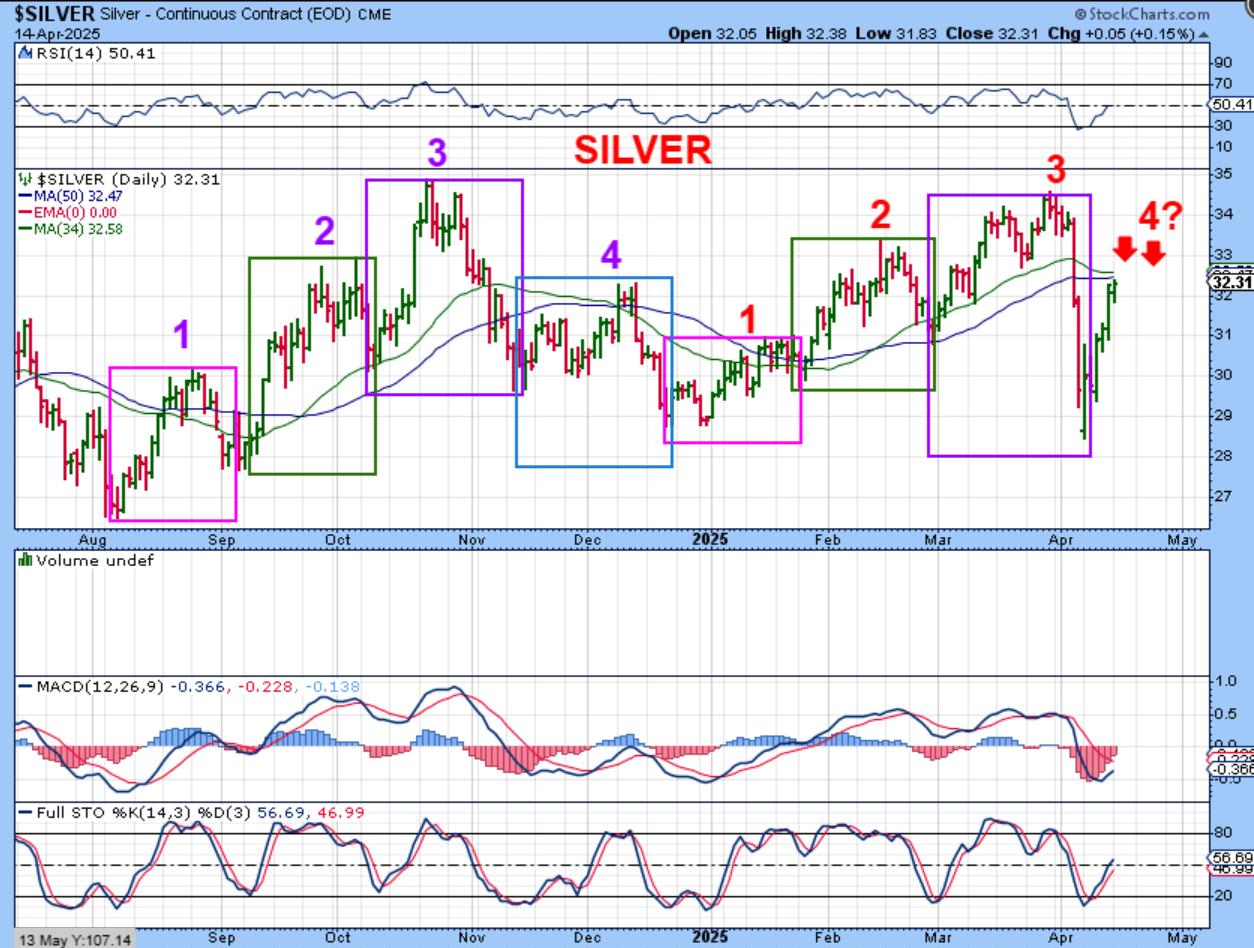 SILVER is pushing into a resistance area, but it may break above it because it is only day 4, it remains slightly oversold, and a slam down like we saw in Silver can recover sharply too (V-bottom).