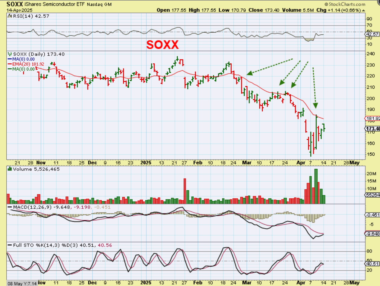 I decided to check the 20 ema on The SOXX and I do see the same resistance area here. The SOXX would need a move above the 182 area to overtake the 20 ema.