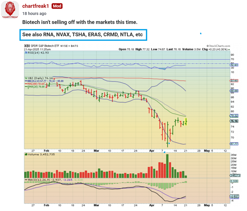 Yesterday in the comments section I wanted to point out what is happening with the Biotech stocks, so I posted this at 11:30 a.m.