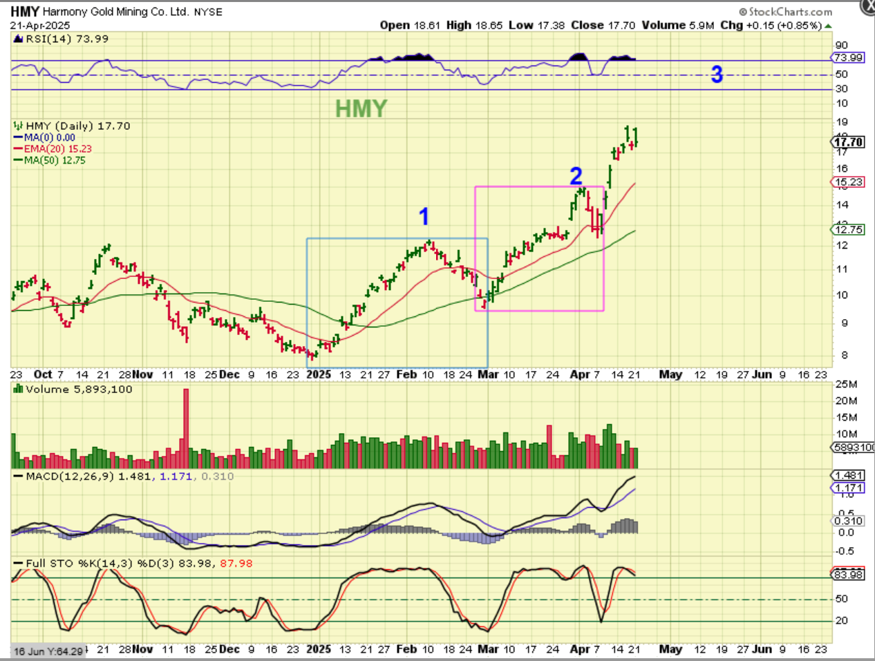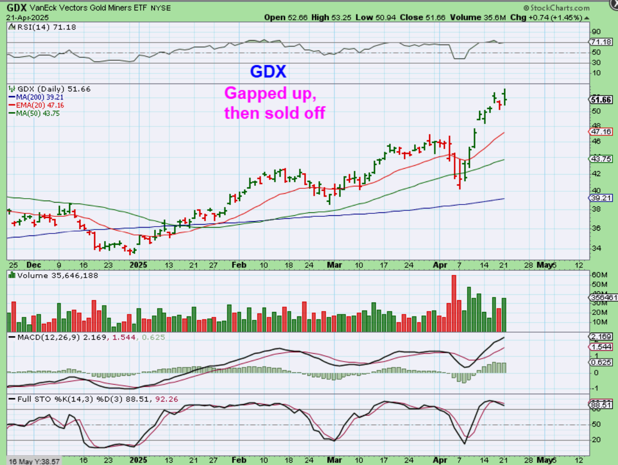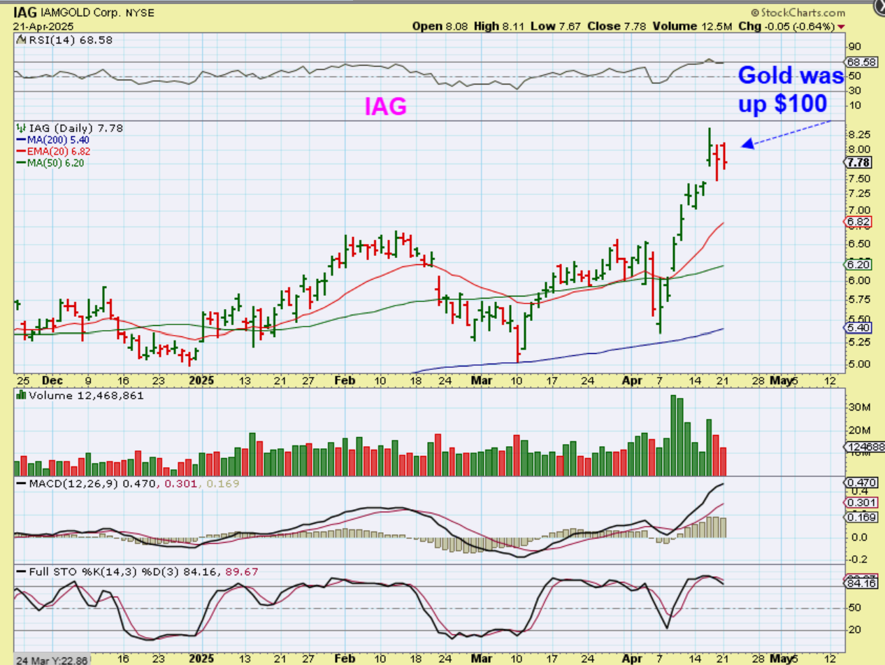 Looking at some of the Gold stocks like IAG, HMY, KGC, etc, we know that Gold itself was up $100, but even the stronger gold Miners started to ‘stall’.