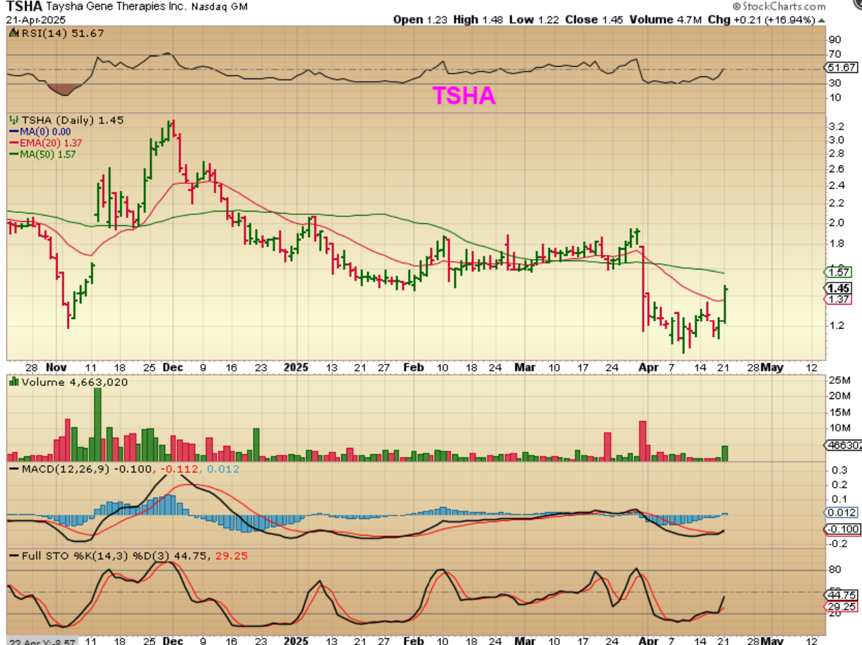 TSHA popped almost 20% at one point yesterday. So this is a sector that we may want to keep an eye on for an opportunity either now or even if we wait until the next dcl.