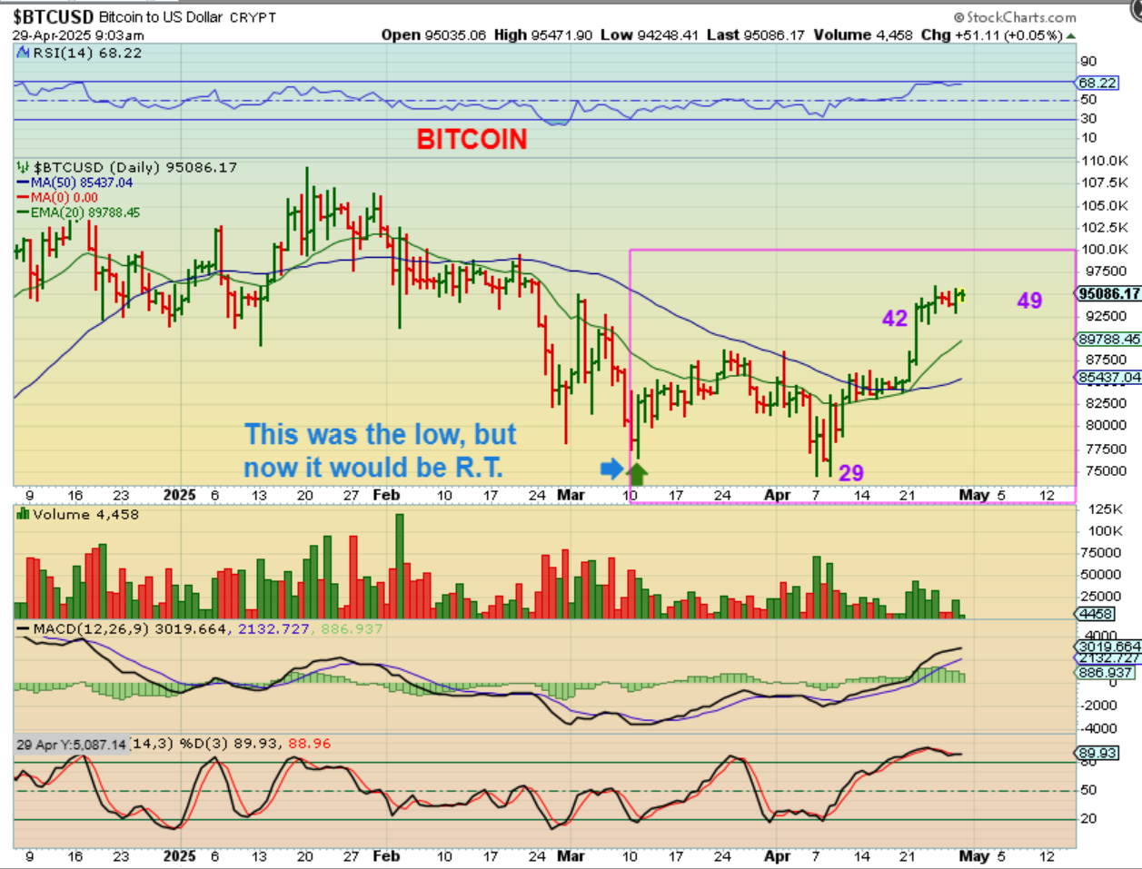BITCOIN  A low also formed in Bitcoin on April 7, so I am just going to watch this play out as bullish, because the weekly chart turned bullish, and now the daily chart turned bullish when…
