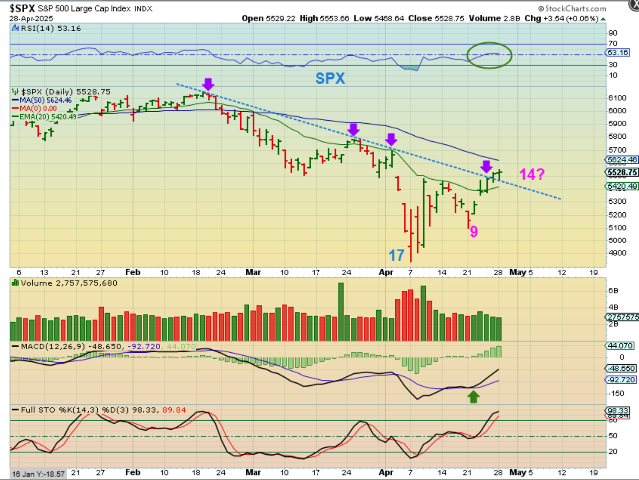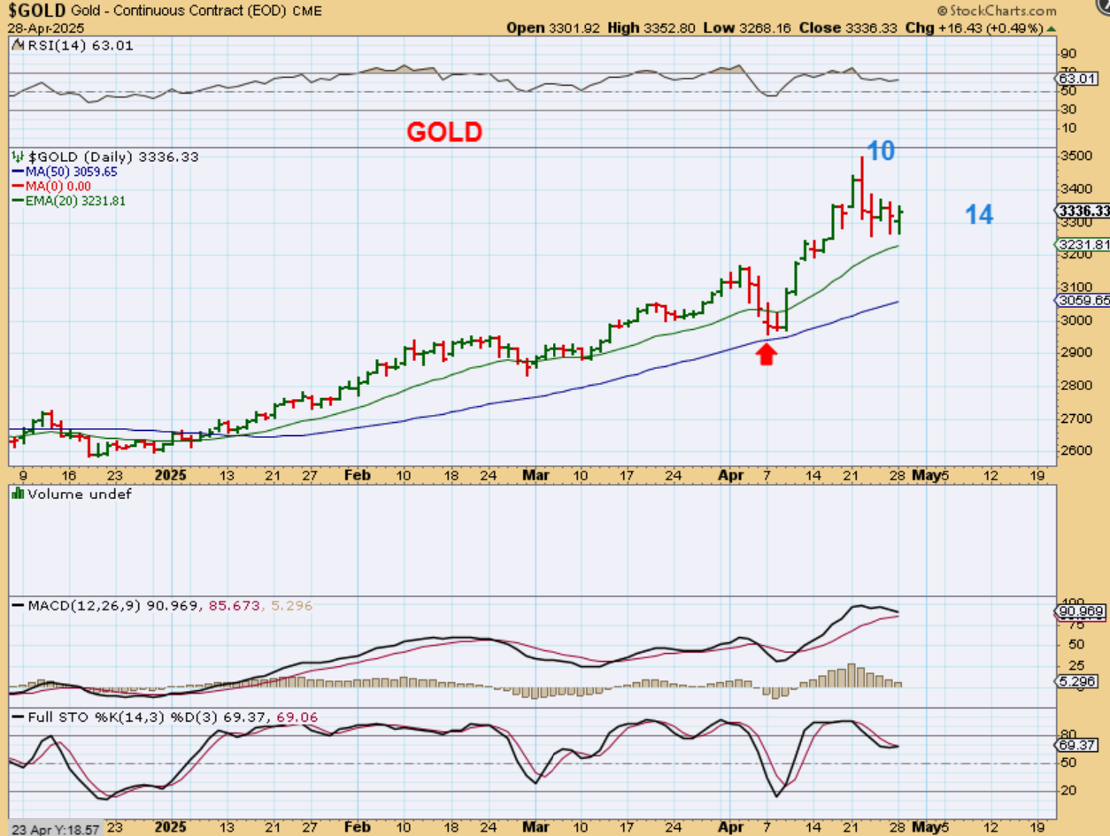 2. It is important to me to note that after the March lows came into place for the general markets, then they crashed into that day 17 low due to tariff talk and uncertainty.