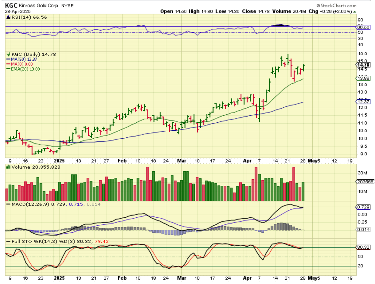 KGC reversed there last week and is slowly climbing higher, so the set ups are bullish at this time.