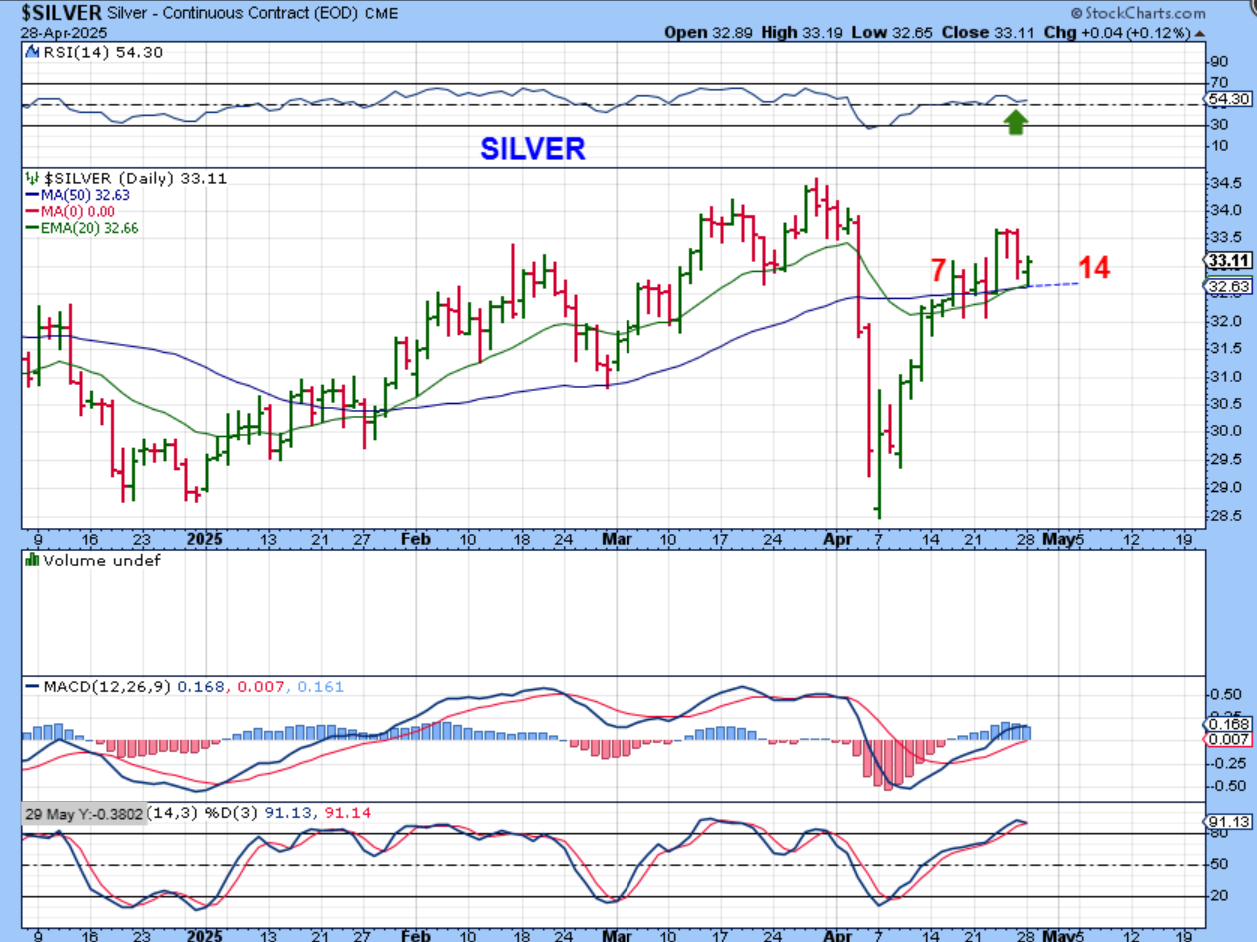 SILVER turned higher at the 50sma. Most Silver stocks do not look as good as Silver yet, but I do think that some Gold stocks look as good as Gold.