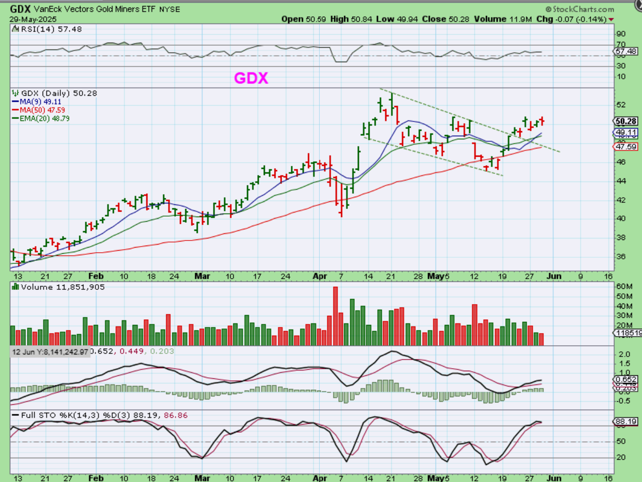 GDX has broken above that downtrend line, and this is a bullish set up. This is day 10.