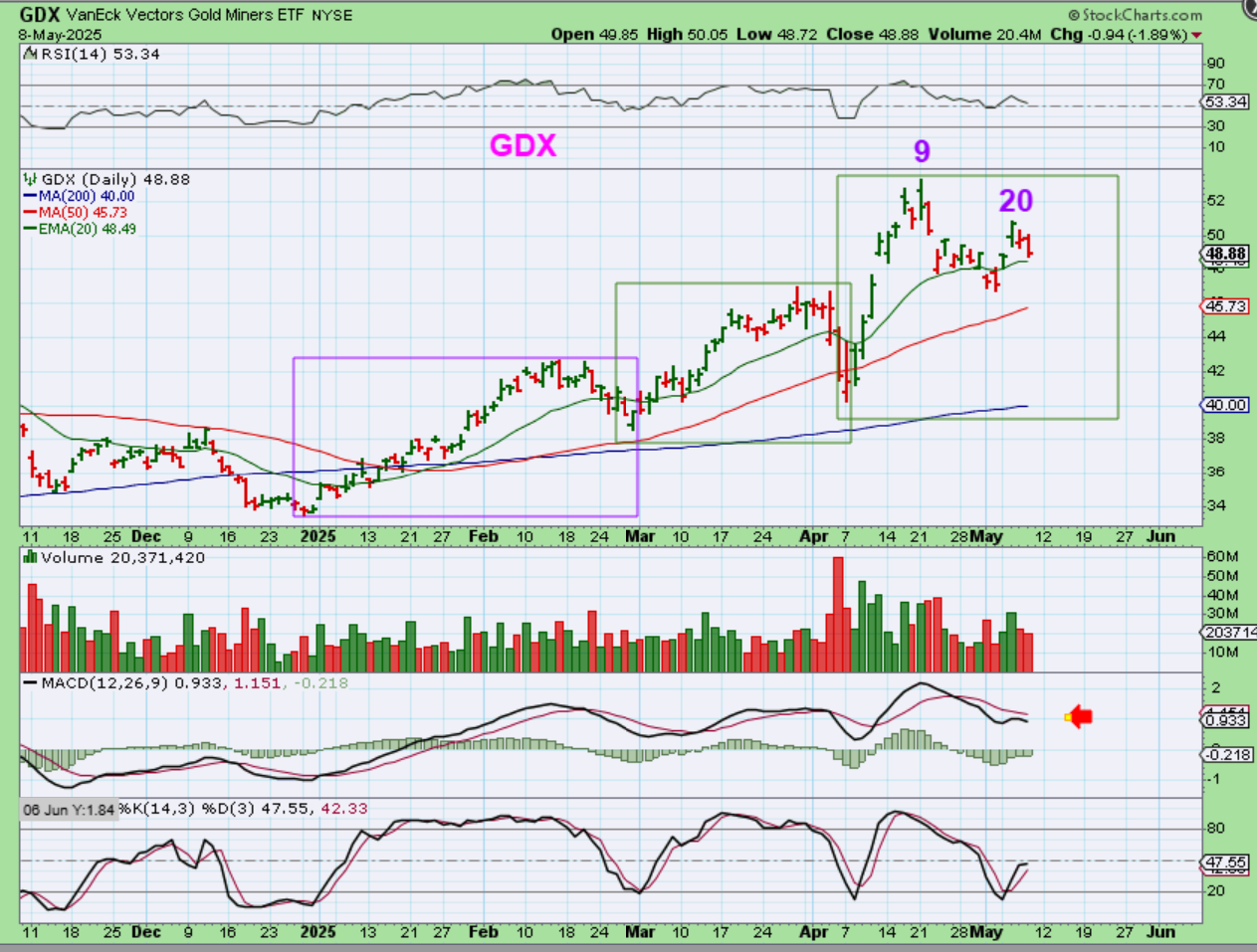 CDE popped 20% plus on earnings!  PAAS, SSRM, also did well, but AG & HL got crushed with their earnings, so I’m hoping that the next Intermediate Cycle is very strong.