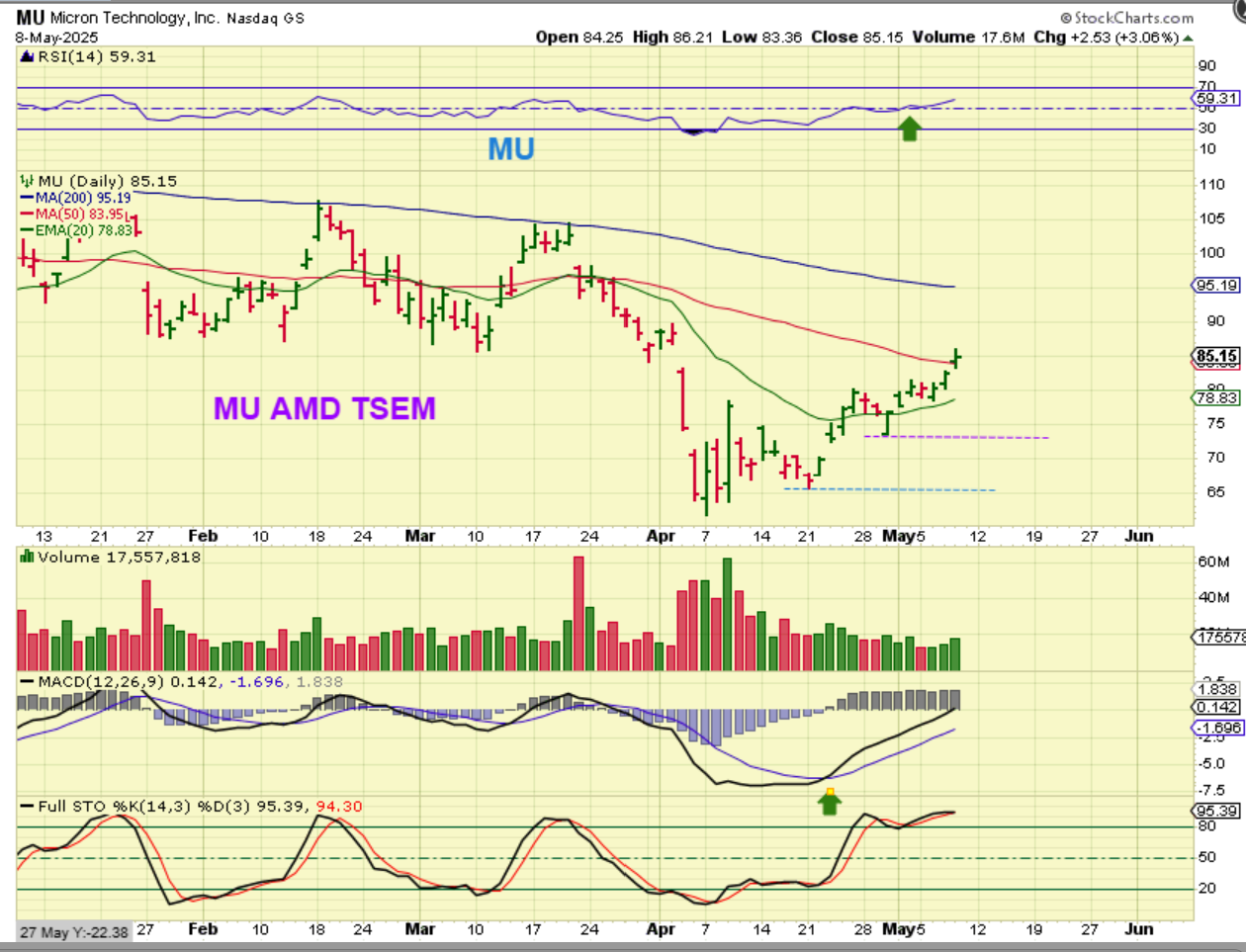The Semiconductor sector should work out as a buy & hold, but I would still pay attention to when the earnings releases are coming out with tariffs POSSIBLY affecting business. If you bought MU at the first dip & reversal near $65, you are at $85. Better than nothing and likely to get a lot better over time. $65 to $100 is great in recent conditions.