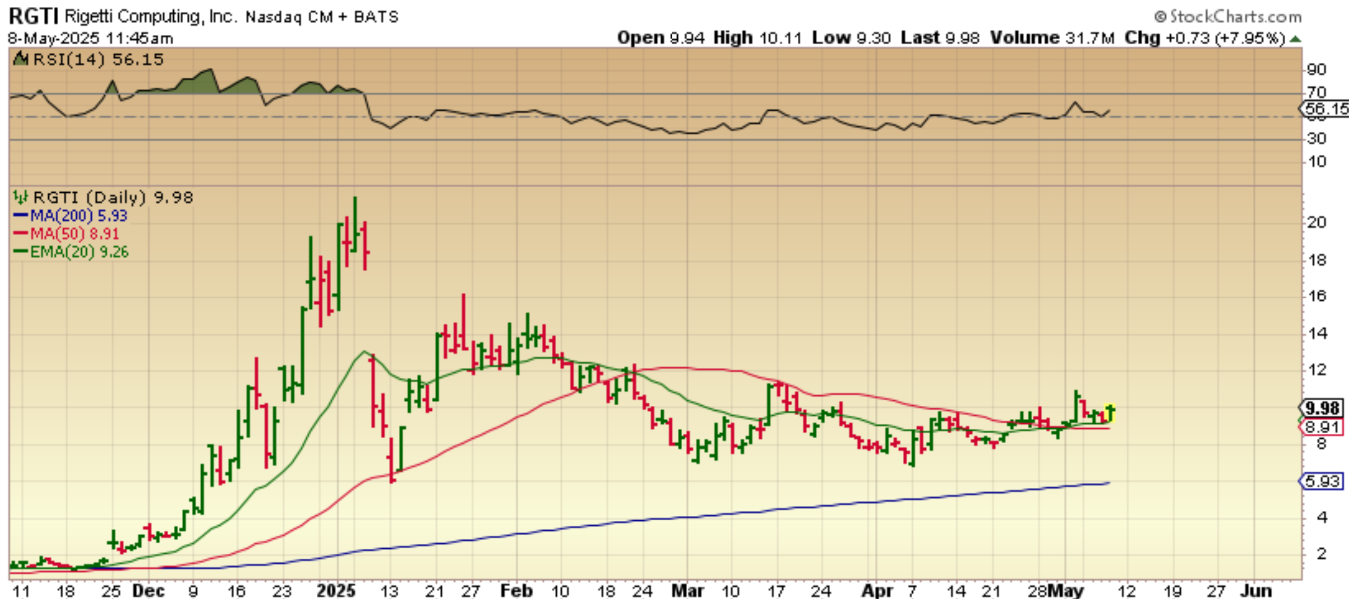 I had been talking about the set up / bases on QUANT stocks like QBTS, QUBT, RGTI, IONQ , QSI  (Those are my personal favorites, and QMCO , ARQQ are good too).  yesterday they gapped open BIG TIME and then closed the gap. I was looking for a reversal to buy the gap fill and RGTI turned at the support area.  I bought it and it shot up, so I posted this. at $9.50.