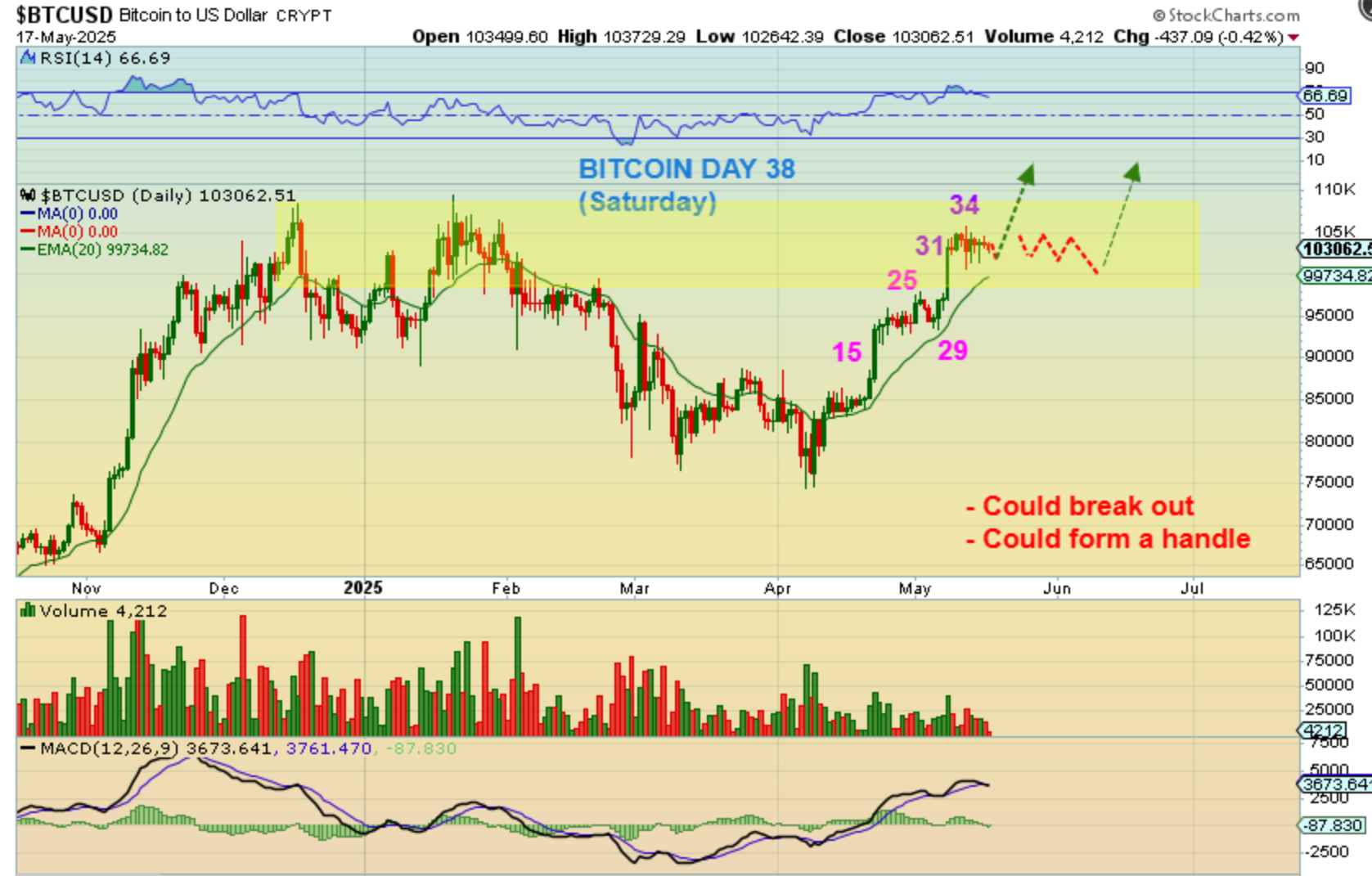 1. I just want to mention that we are on day 38 of a possible 60 or so, so there is plenty of time to pull back a bit and then break out to new all-time highs.