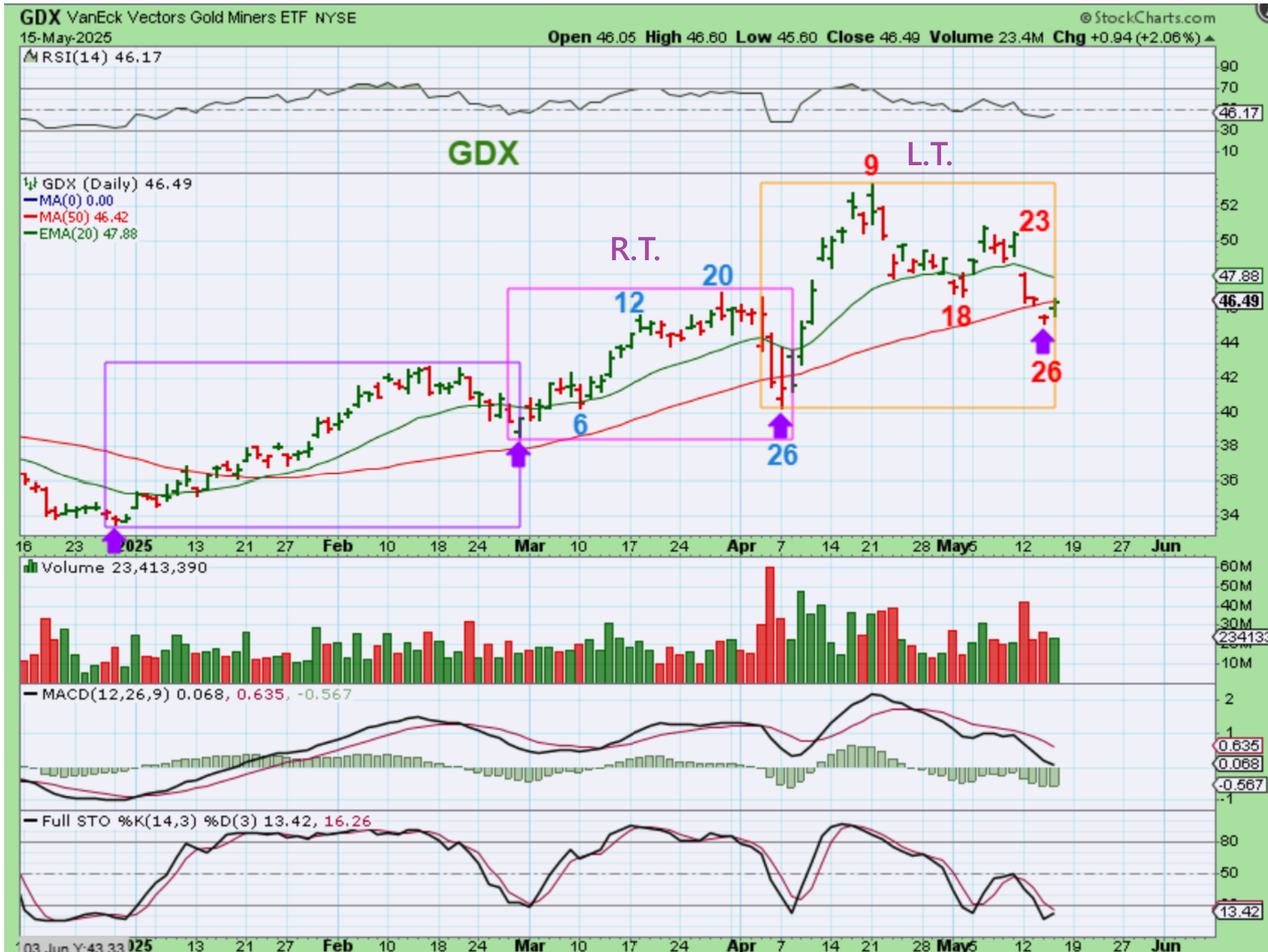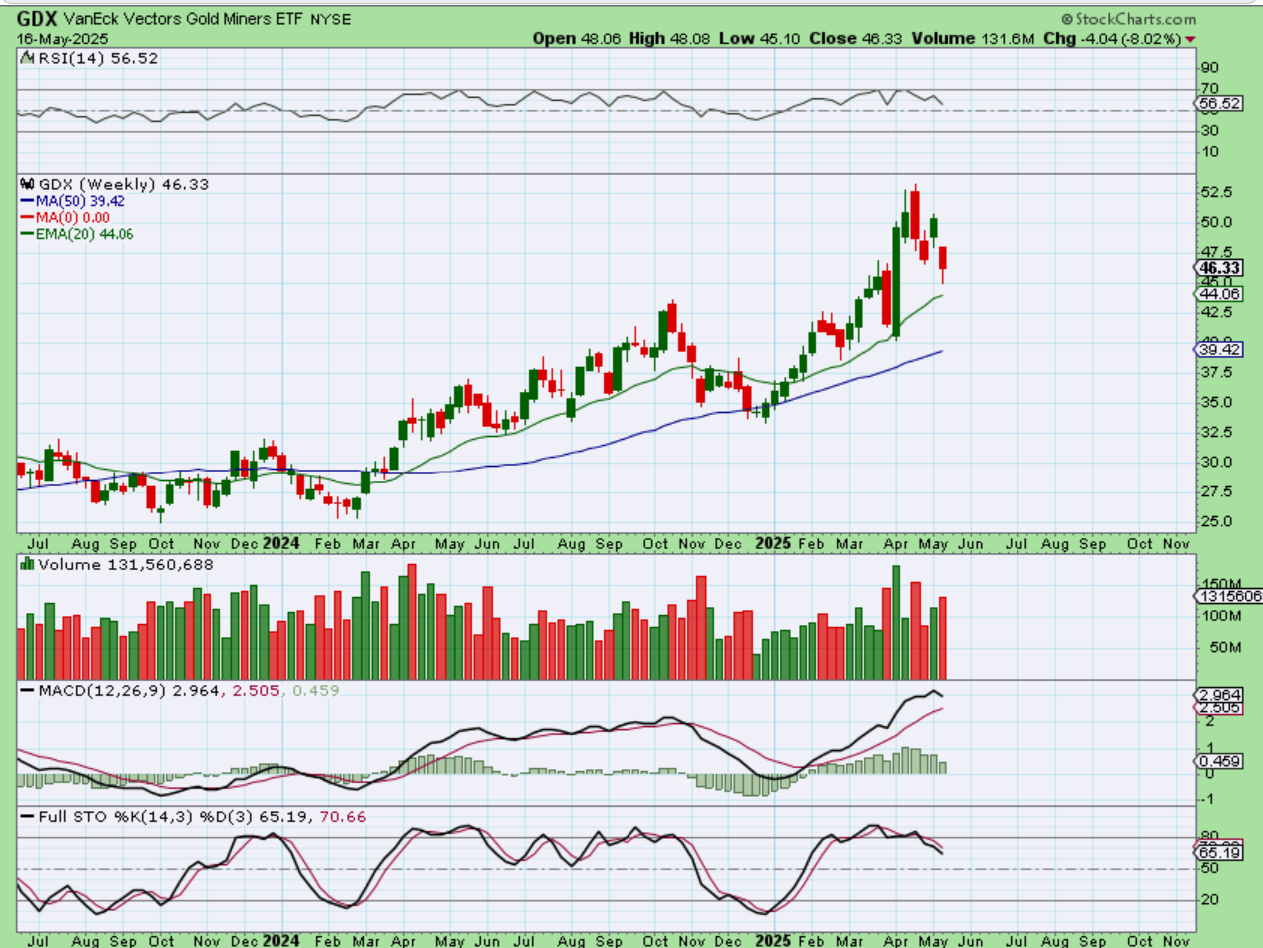 GDX WEEKLY– So the GDX weekly chart may also have a reversal /dcl here. Miners suddenly SURGED in early April out of that dcl, but then it slowed down, so we’ll see if that happens again.