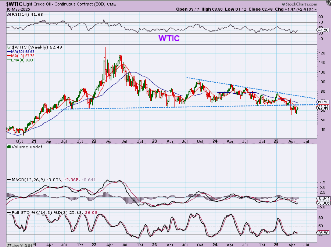 WTIC WEEKLY – We know that Oil broke down and it hasn’t been above to recover yet, even though we have 25+ days in this daily cycle. If we have an ICL, it will recover bit it may only bounce around in that blue triangle. Oil remains choppy.