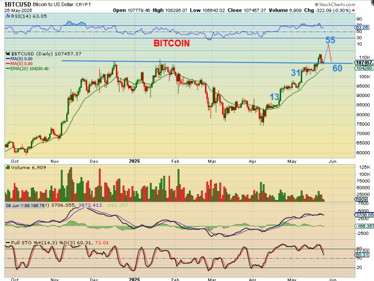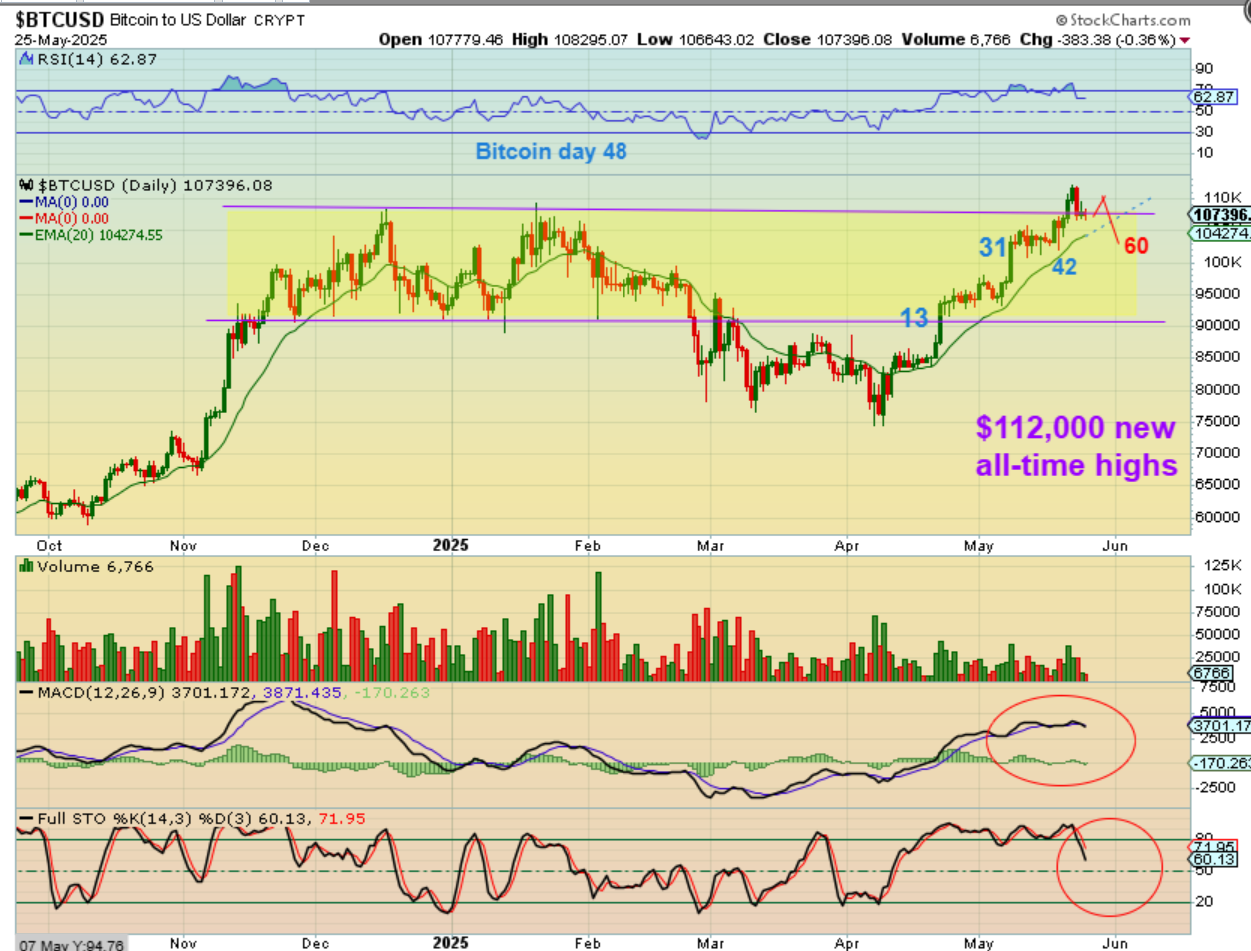 Bitcoin Daily – Saturday is day 48 out of that April low and we hit all-time highs this week. It then started to pull back and since it is up at all-time highs, it may break out, take a rest & get choppy (into day 60ish) and then rally onward and upward. It is also very possible that…