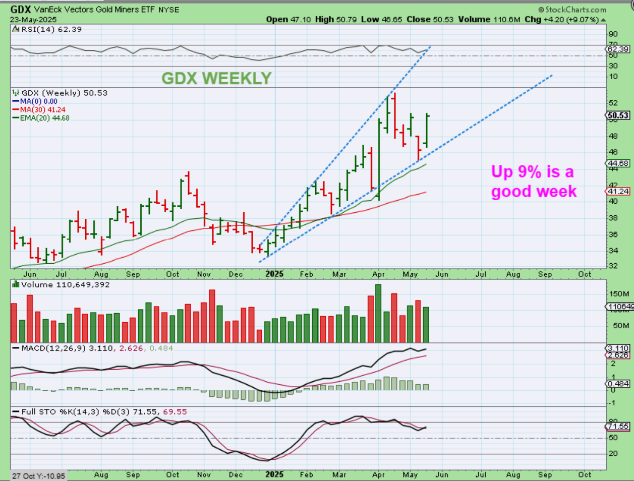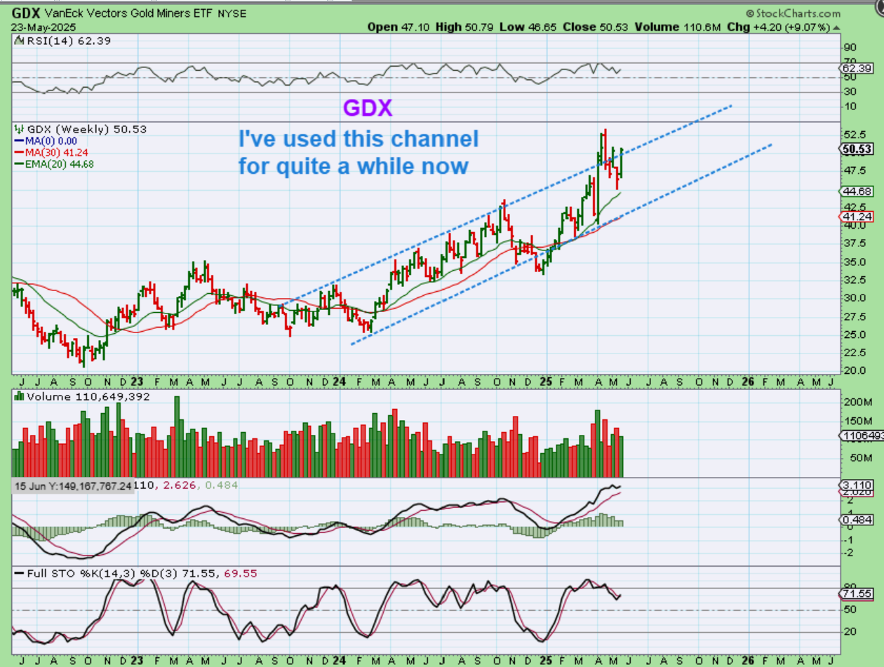I do want to mention that when price breaks from a channel and continues higher, it often becomes a steeper run higher. So whether that happens now or after another pull back, the Miners could start a steeper run above this channel. That steeper trajectory is already apparent in 2025, isn’t it.