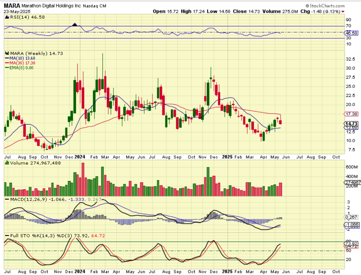 It is a bit disappointing to see that they are lagging, since Bitcoin is at the all-time highs. I hate to see MARA, RIOT, WULF, etc not even halfway up in a recovery, and MARA was rejected at the 30 week ma last week with Bitcoin breaking out. But then something came to my mind this weekend…