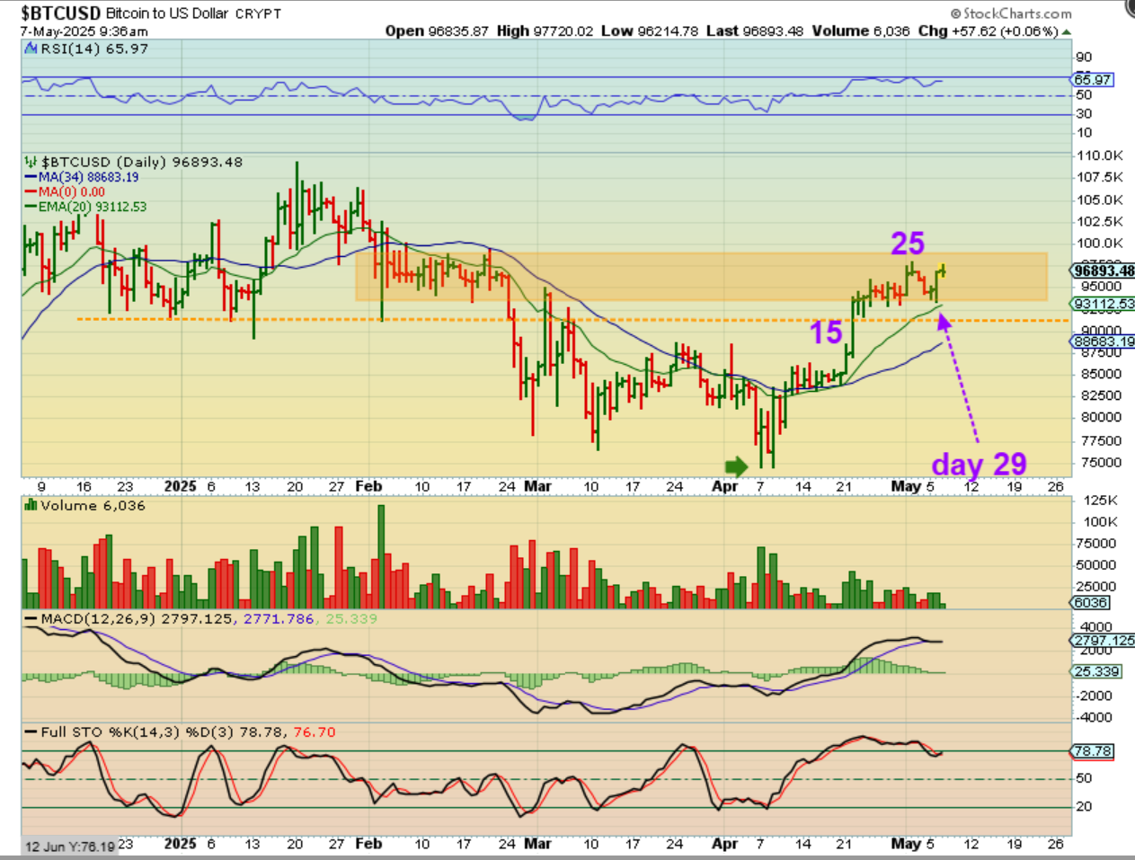 It seems that things are pretty straight forward with the markets and Fed decision (possible cut in June, depending on the data). We’ll see if Thursday can settle down, pick a direction, and follow through. That direction SHOULD BE HIGHER for the General Markets & Bitcoin, which actually ‘Popped’ overnight (see below).