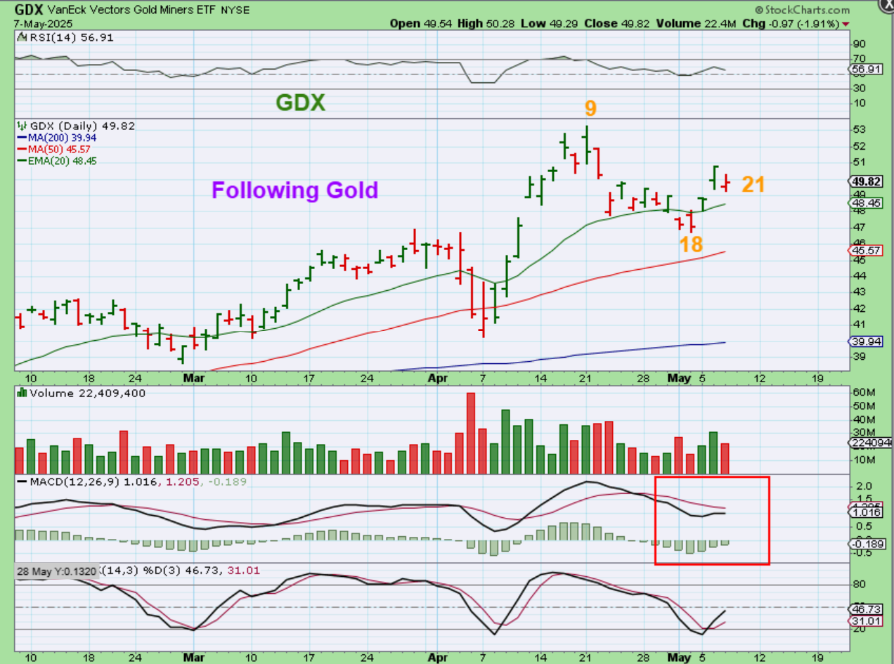 GDX seems to be following Gold more these days. This would be L.T. at this point.