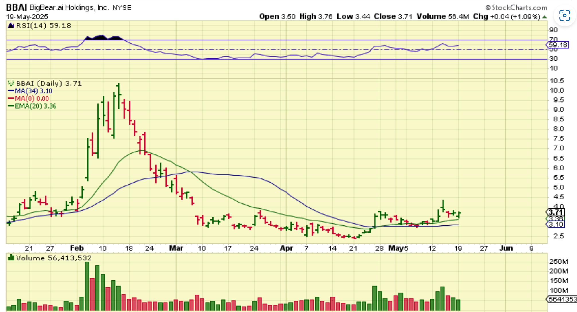 BBAI – It even went Green by the end of the day, so this ‘AI’ stock is basing out, but now has higher highs and higher lows. It is a ‘buy and hold’ candidate, as long as we understand that it CAN drop to the blue line again. It may or may not.