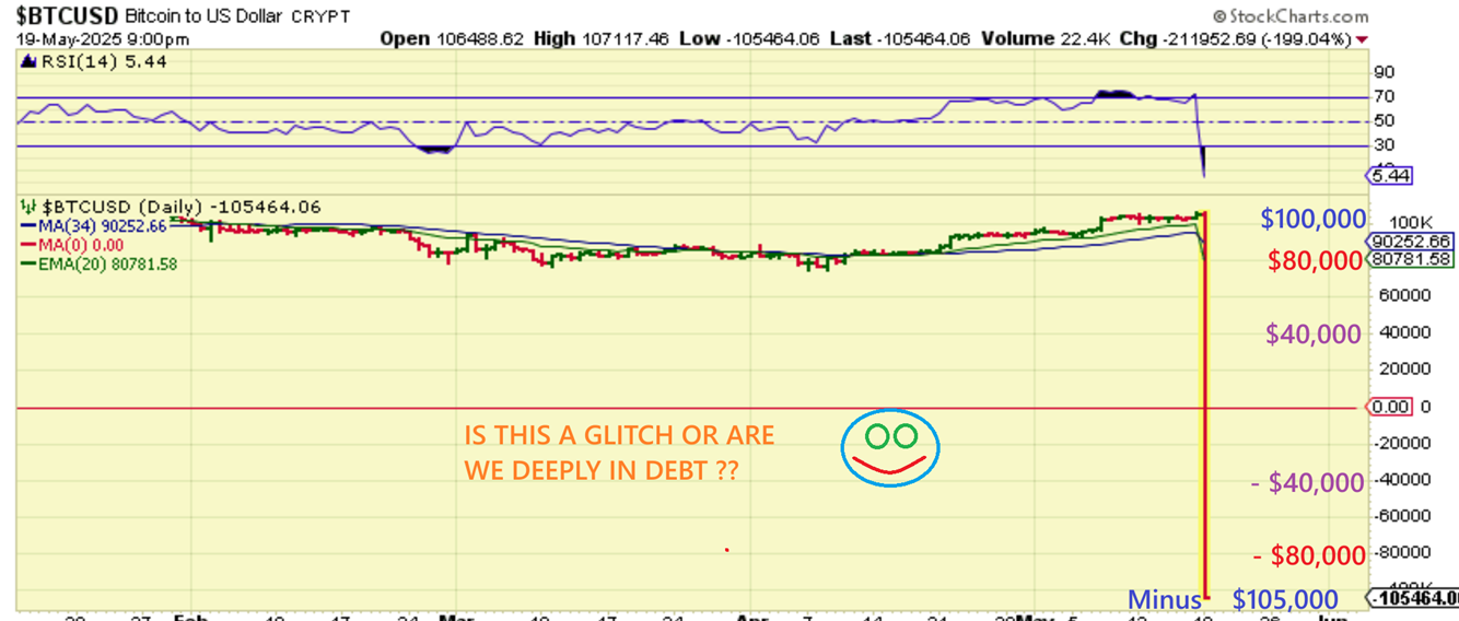 Bitcoin dropped from up $105,000 to down – $105,000 🙂 o.k., this must be a glitch…