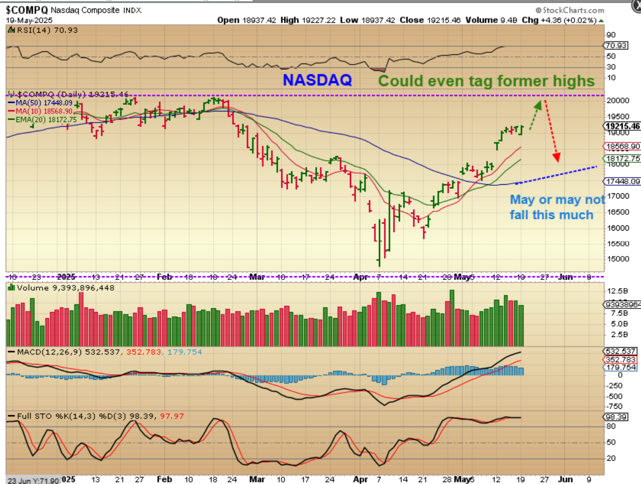NASDAQ – A run to the highs and then a dip? It is possible, and if so, the dip may NOT be as deep as the 50sma.