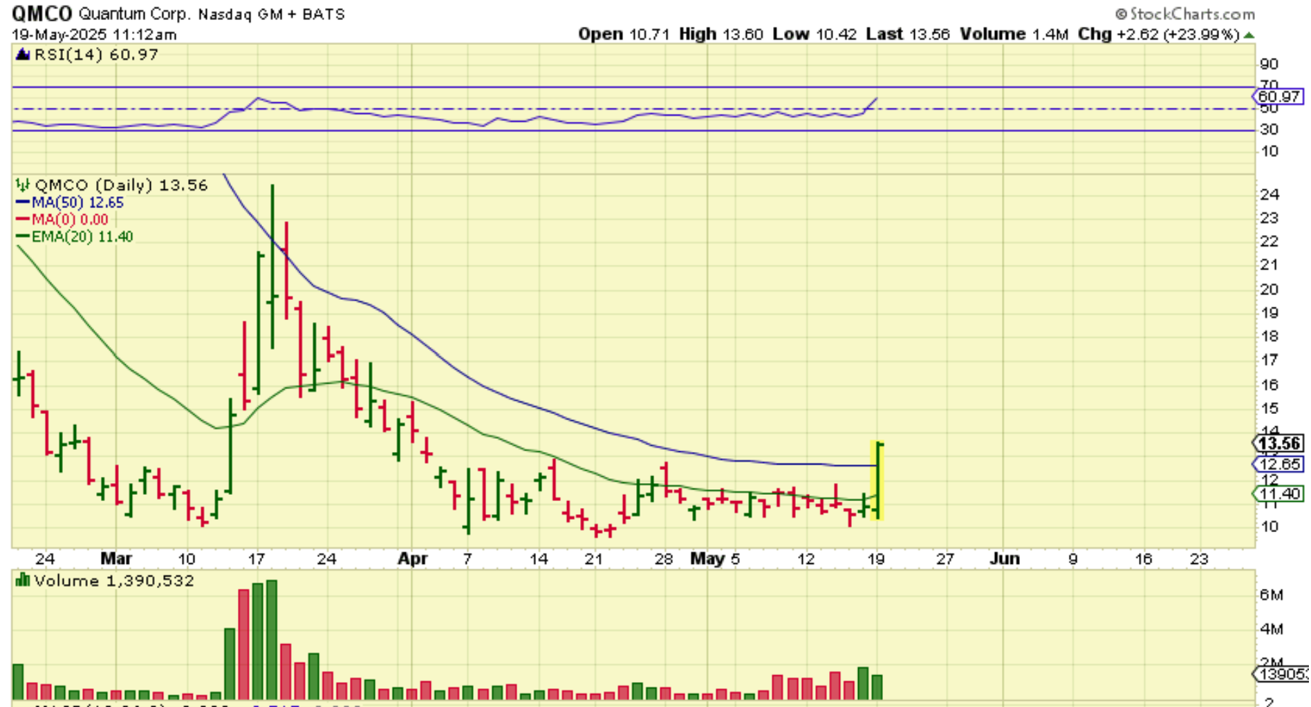 QMCO was up 24% an hour later. These move so quickly it is scary. 🙂