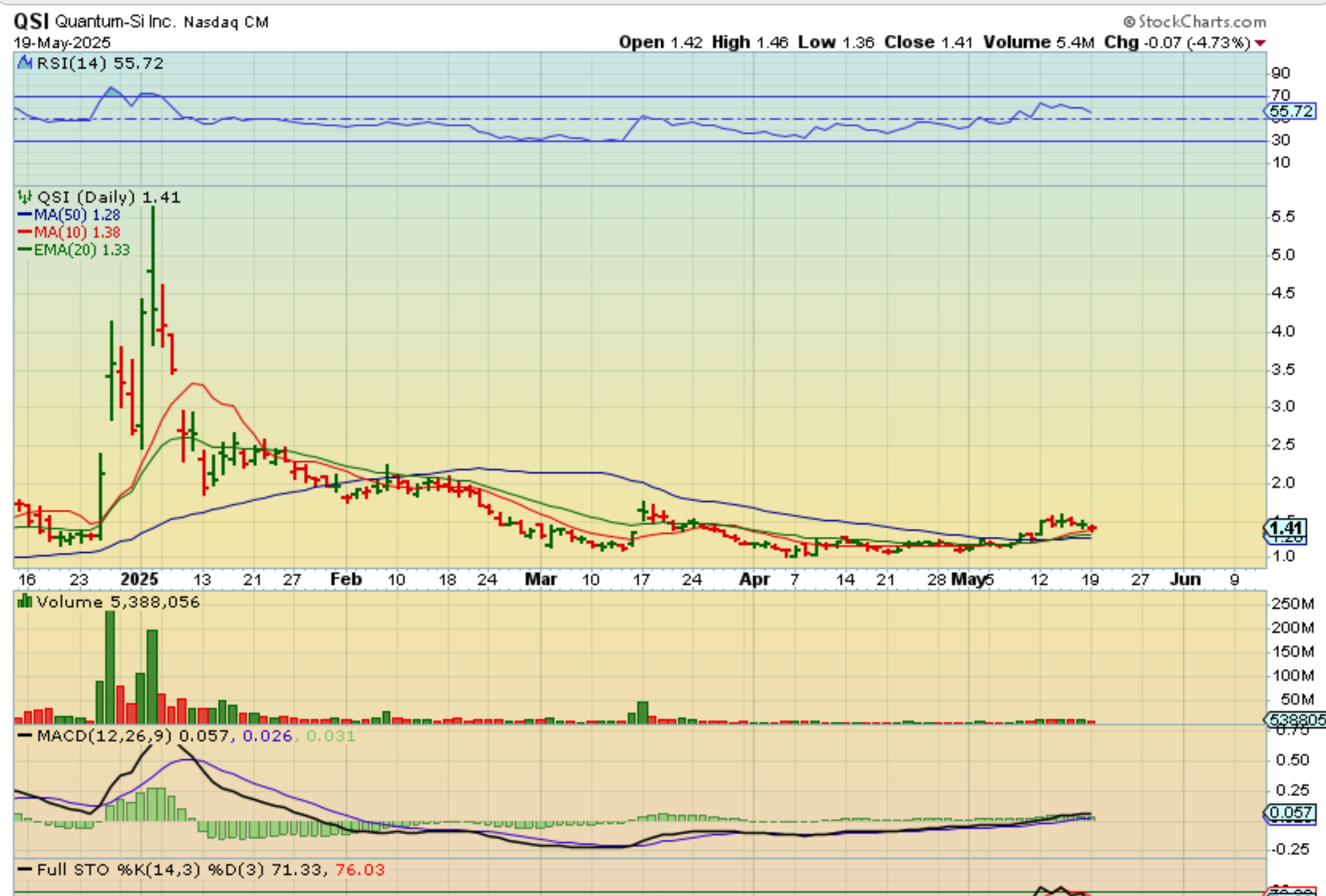 QSI– Is still basing out, but when these go, as you’ve seen, they really go. I pointed this one out a week or so ago too, as it set up to break the 50sma, but the follow through is yet to come, I would guess.