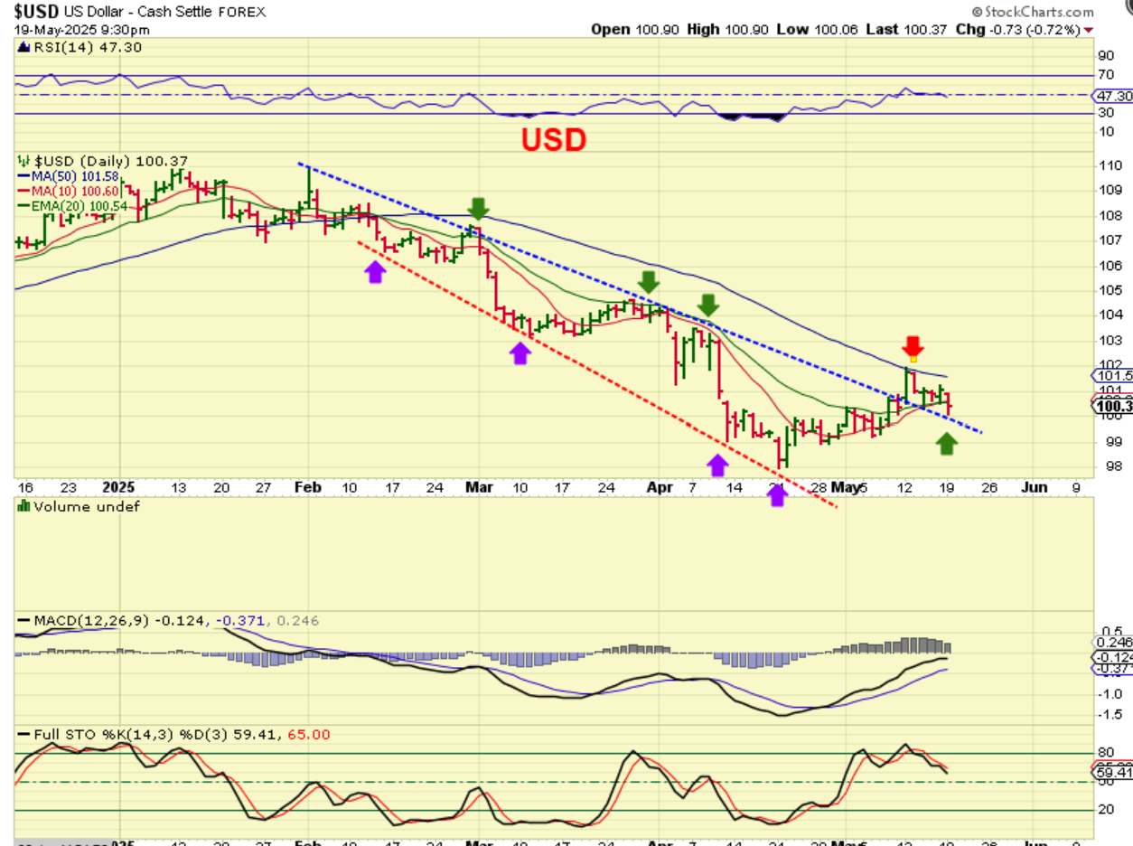THE USD is still being held down by the 50sma, but has made progress. As it seeks out a dcl, Gold has been rising, but NOT very quickly.
