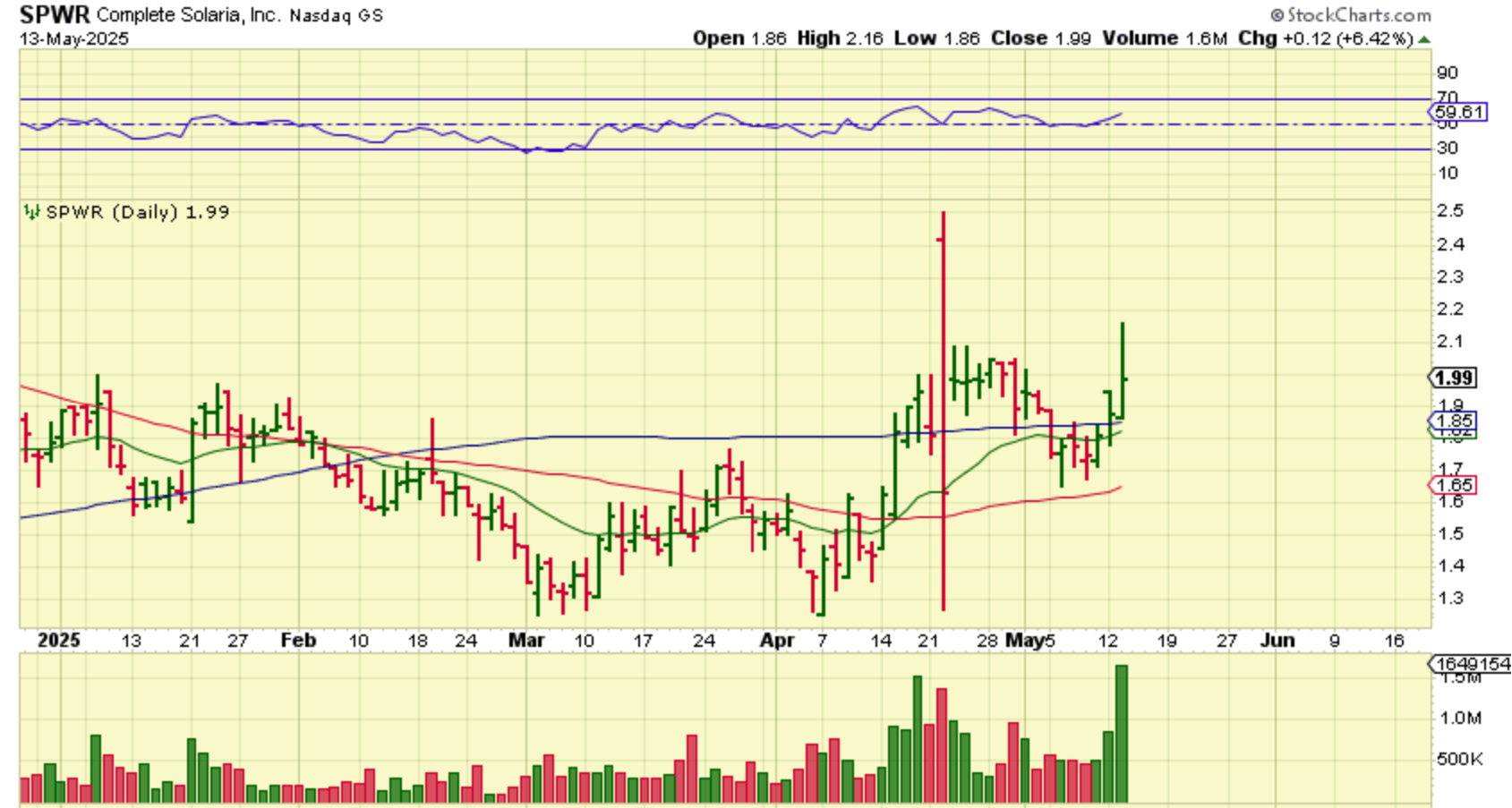 SPWR then shot up 16%, but then it slowly sold down into the close too. It was up 6.42%, but I feel the same way about this one. It can pop and drop and maybe even pull back, but over time, if this solar sector remains bullish, it can move much higher.
