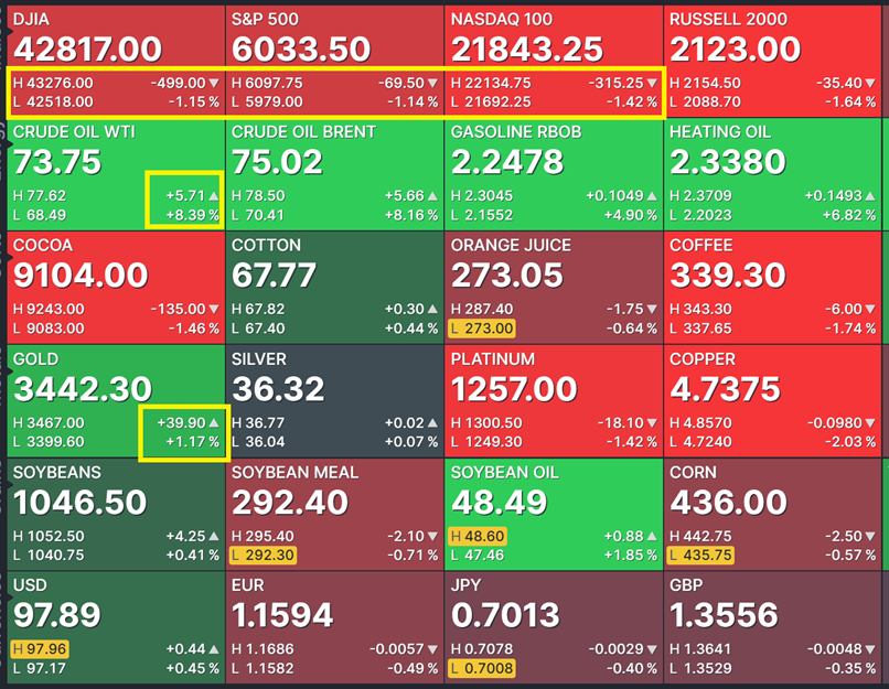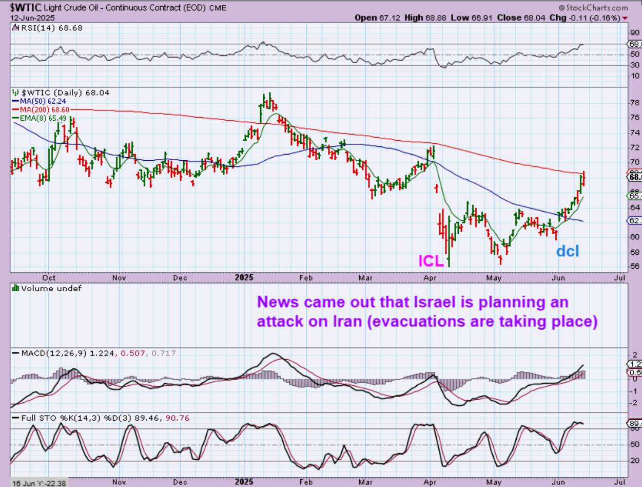 Note: Much of this report will be considered a ‘review’ of what happened on Thursday, but we had some news released overnight that Israel attacked Irans’ nuclear sites and targeted some military leaders, and that can affect other areas. With that news, we have a big change in some areas (especially Oil, as you would think). These are the futures as of 6 a.m.