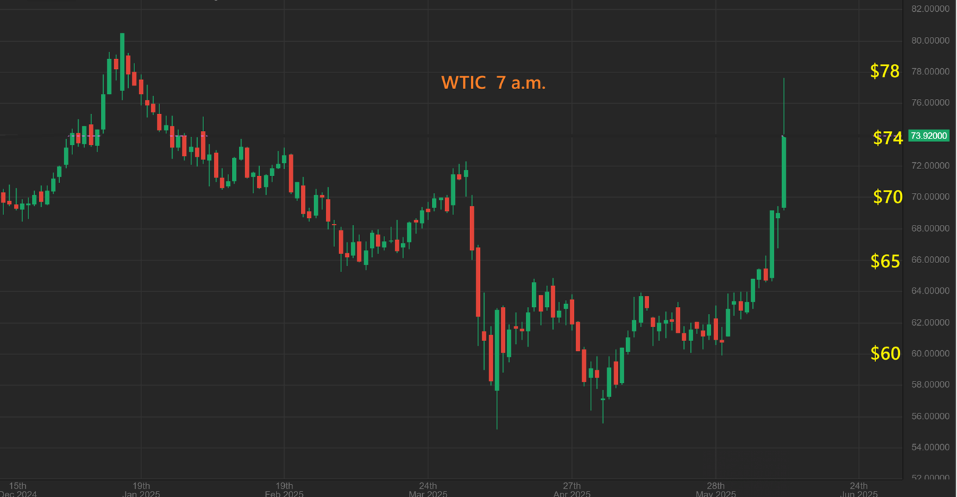 WTICAfter the Iran strike, Oil actually spiked from $68 to $78! It is now at $74. Obviously, the downtrend and that 200sma are now broken =)