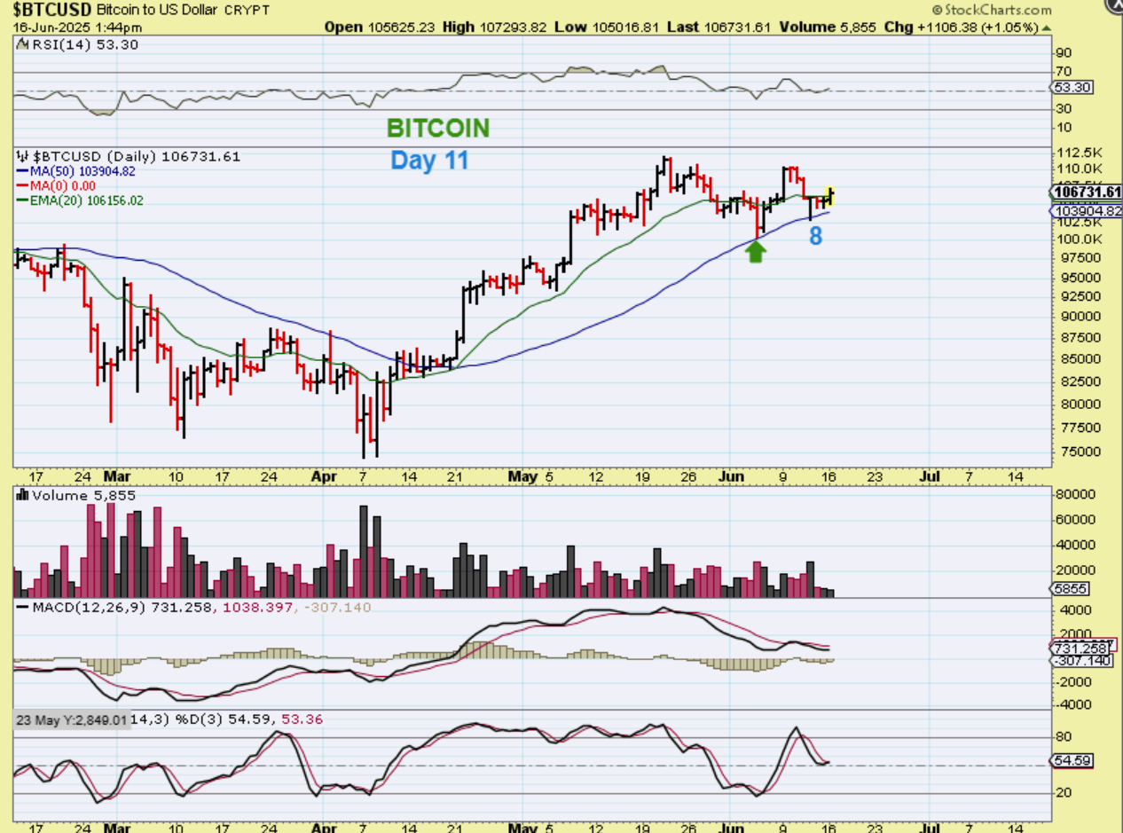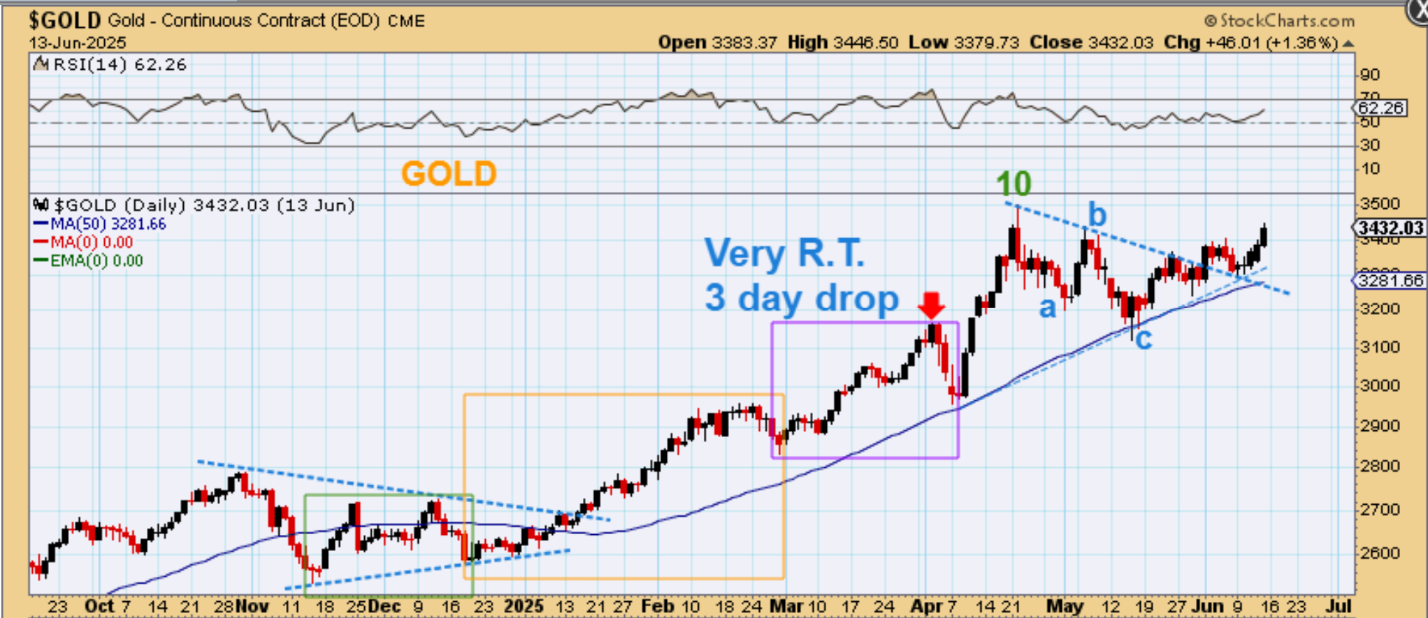 GENERAL MARKETS – On Friday the markets dropped on the news that Israel attacked Iran. Would it be a knee jerk reaction or would it really hurt the markets? So far it was just an immediate reaction. The selling stopped and the markets gapped higher on Monday.