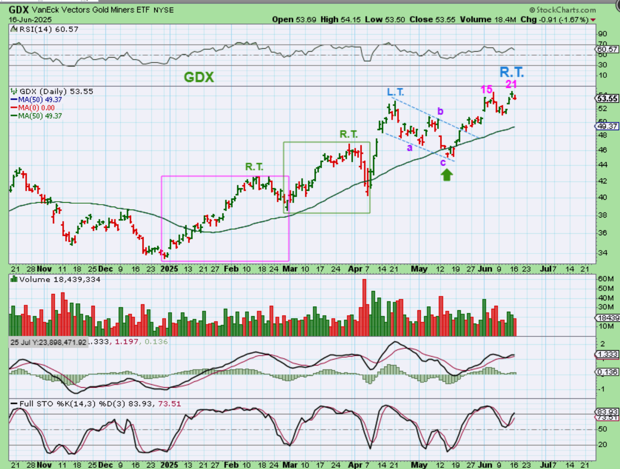 WITH THAT TRIANGLE IN MIND, we usually count the last low as an ICL. We did that at the very end of December. Keep that in mind, Golds last ICL would be marked at the very end of December, right? WITH THAT MAY ICL now in Mind…take a look again at the GDX, that had been following Gold and not SIlver….
