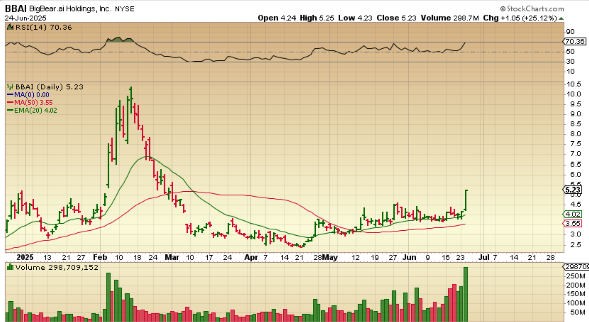 If you grabbed that BBAI stock from yesterdays report that has been in a base, then you were treated to a 25% pop.